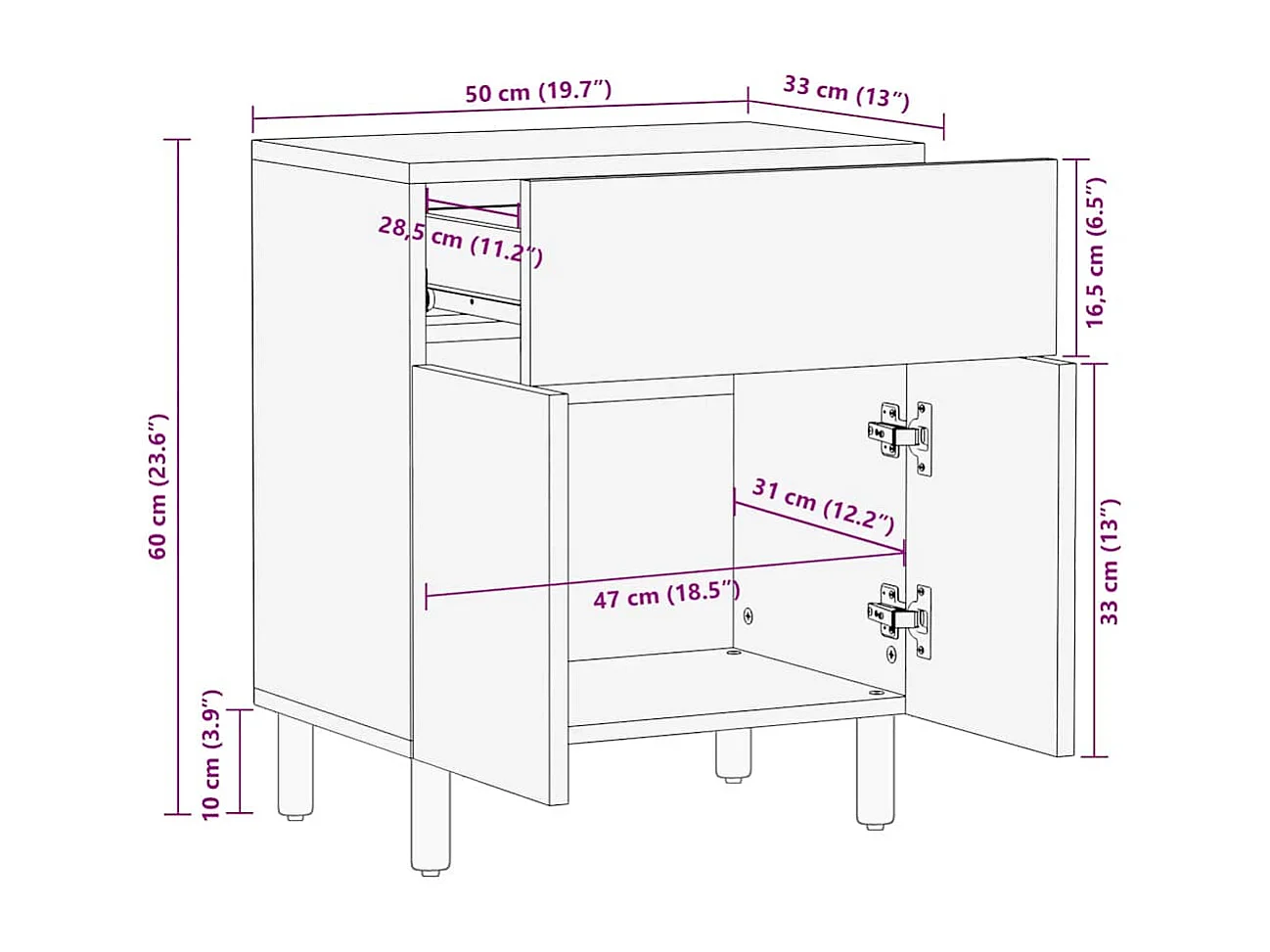 Mesa de cabeceira 50x33x60 cm madeira de mangueira maciça