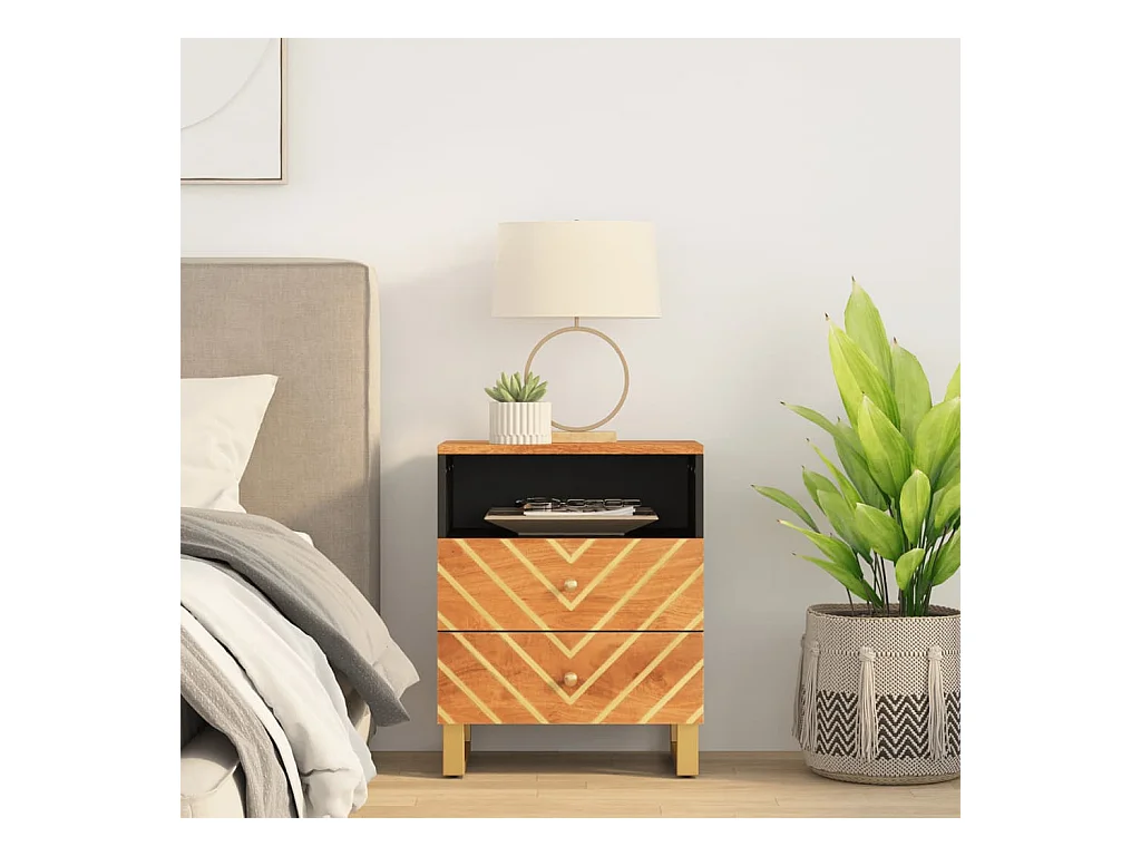 Mesa de cabeceira 50x33x60 cm mangueira maciça castanho e preto PT85387