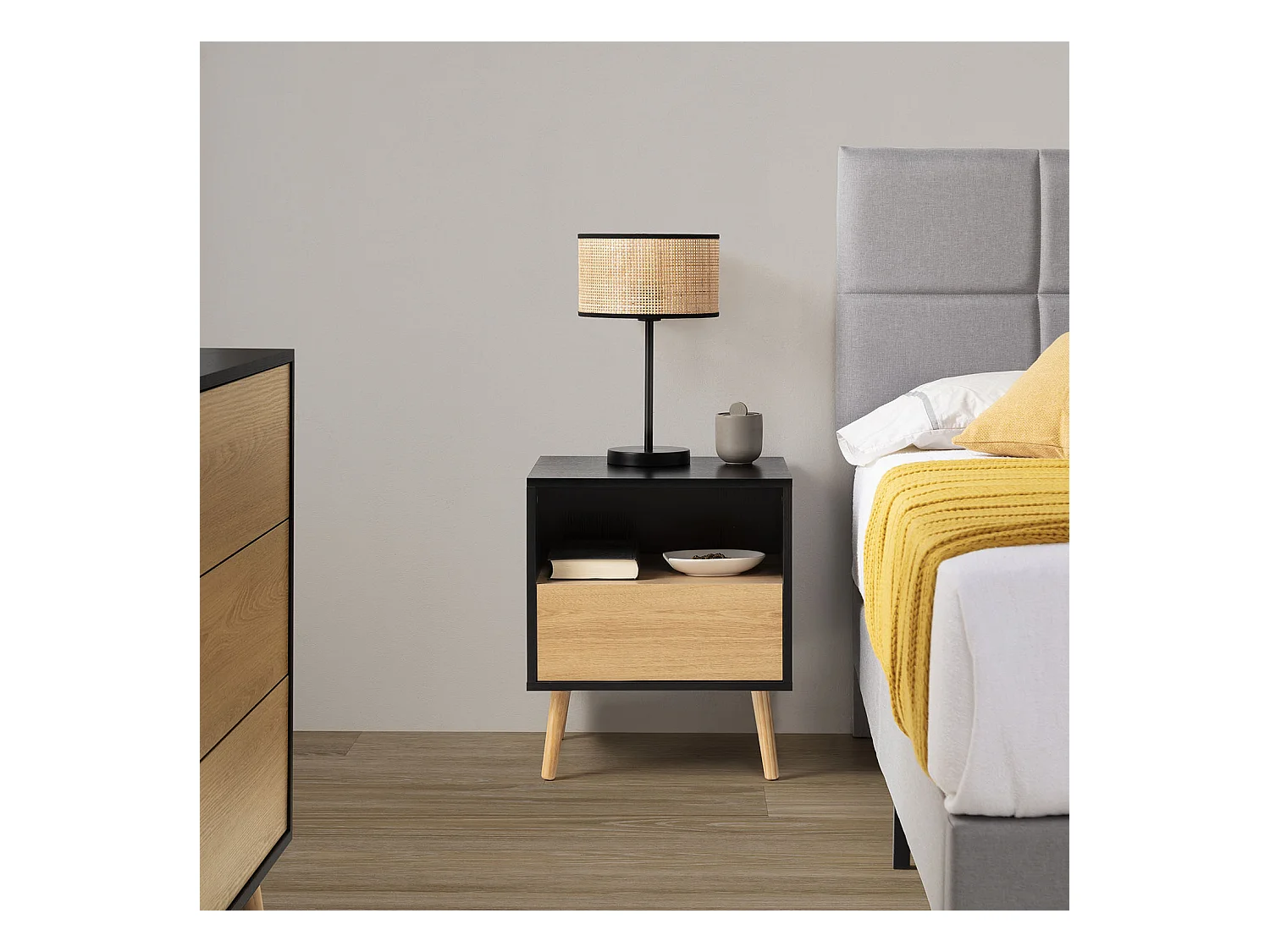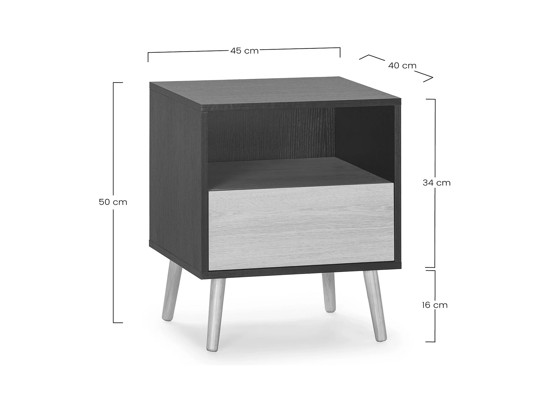 Mesa de cabeceira Denis 2 gavetas Preto/Madeira