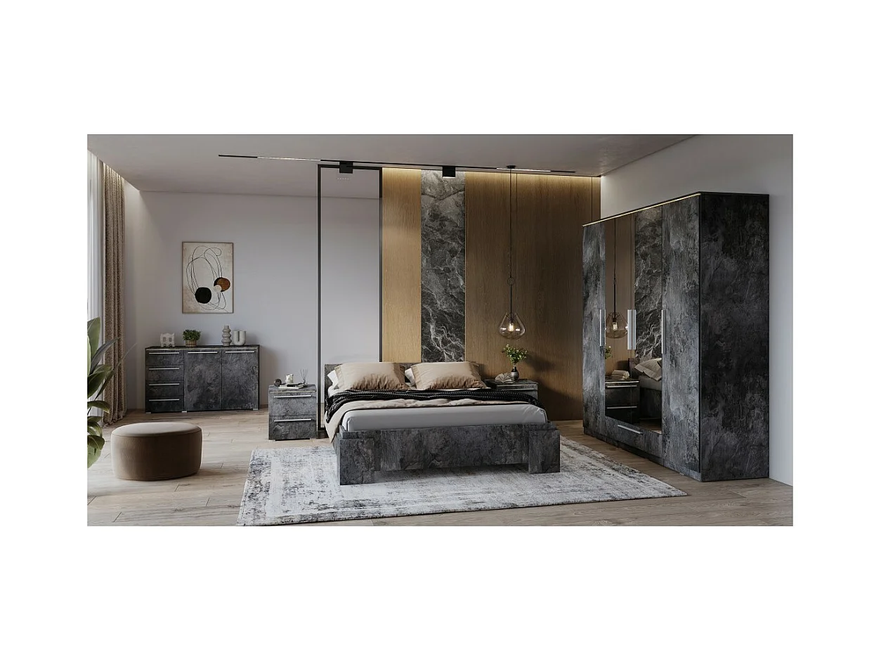 Mesa de cabeceira BOMBAY – Ardósia – 2 gavetas – Iluminação LED multicolorida – Design contemporâneo