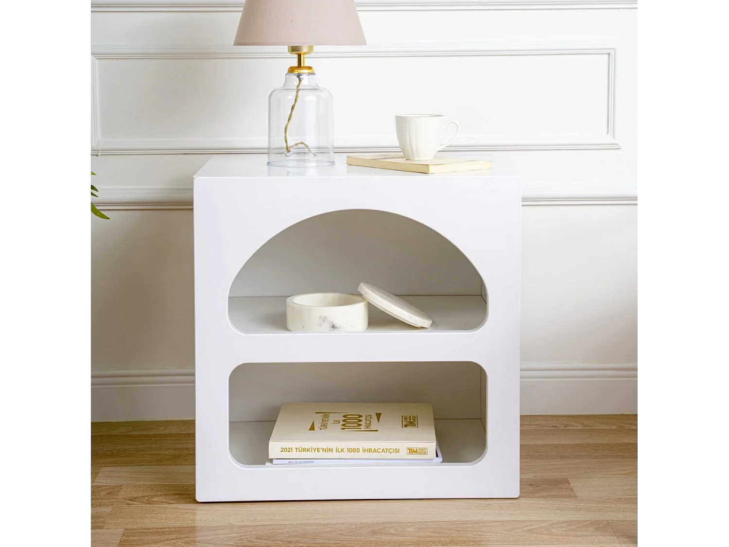 Mesa de cabeceira branca 40x35x50 cm madeira trabalhada