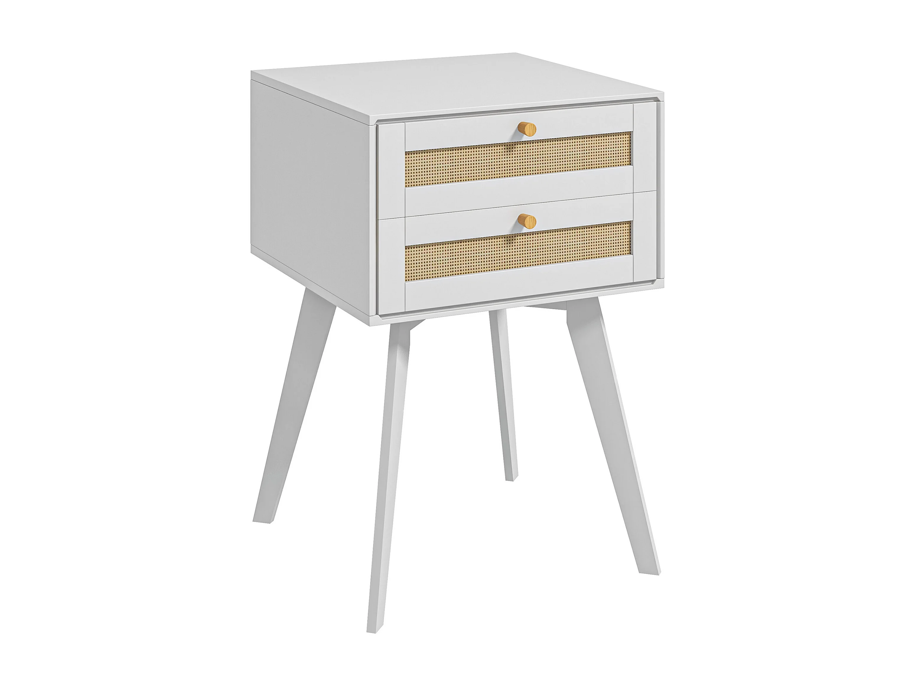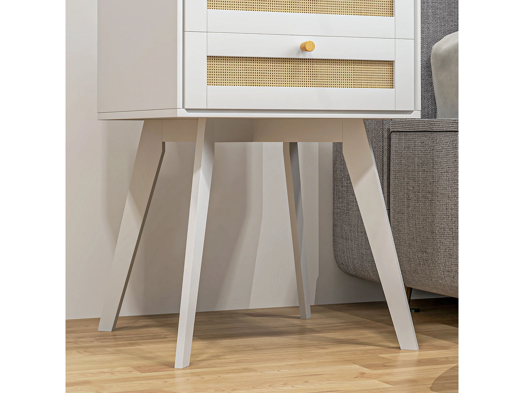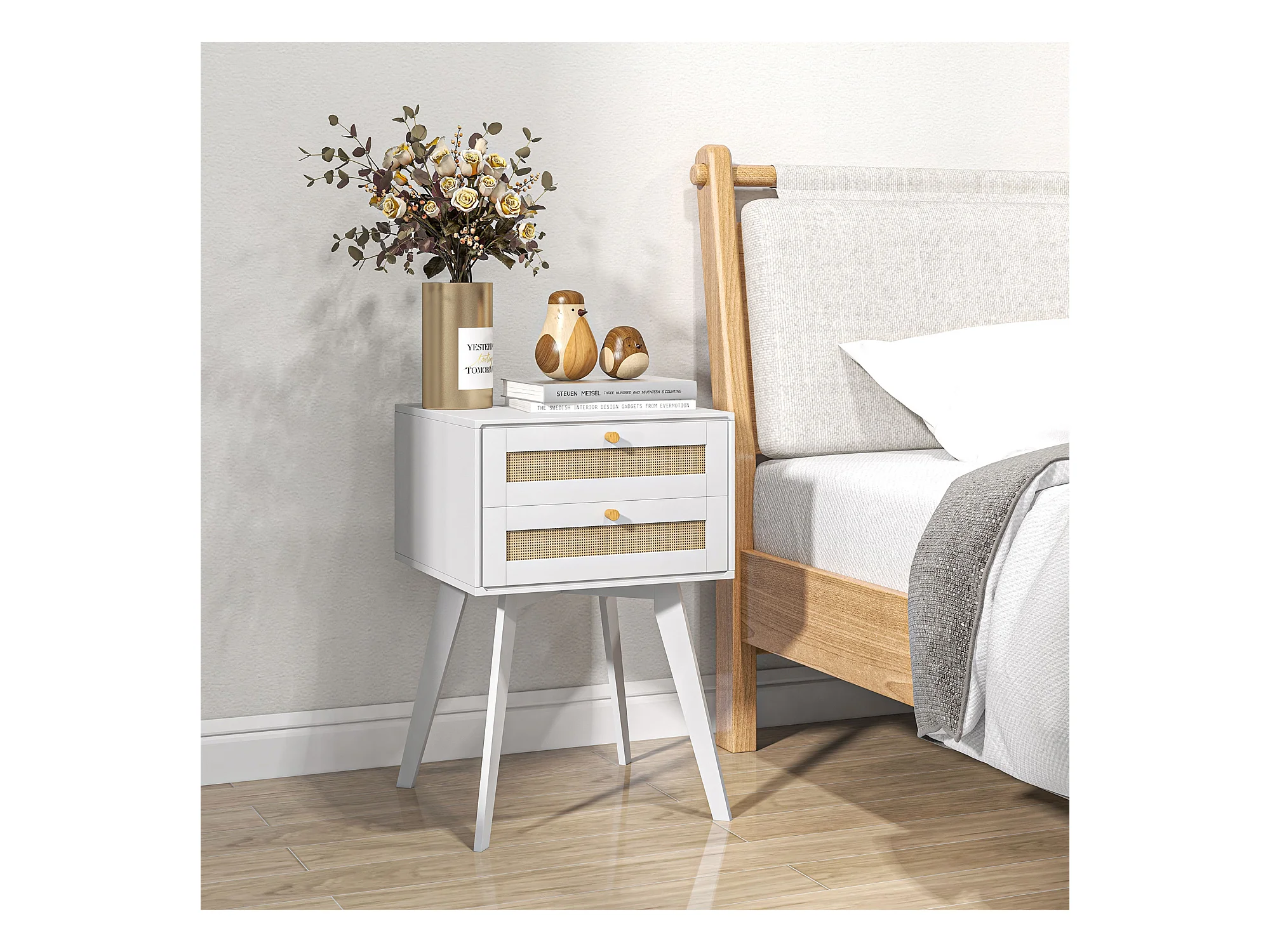 Mesa de Cabeceira Branca Boho com 2 Gavetas e Detalhes em Vime - Perfeita para Quarto e Sala de Estar