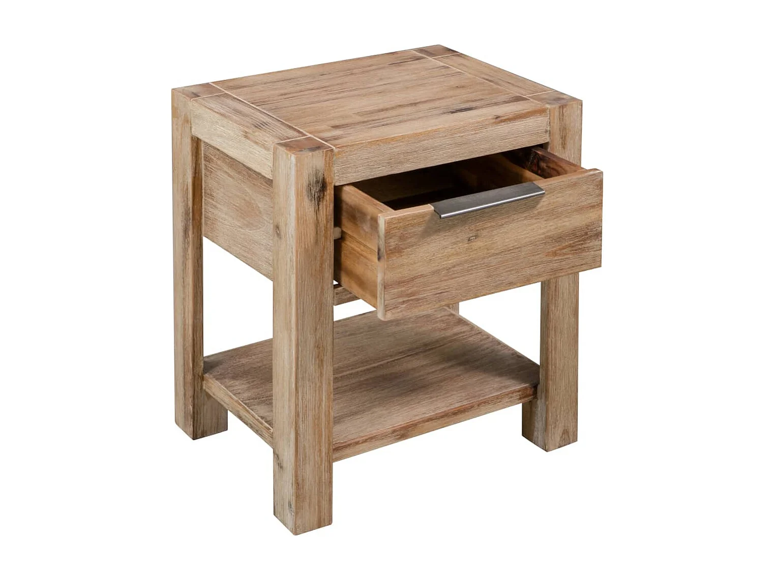 Mesa de cabeceira com 2 gavetas, madeira reciclada maciça
