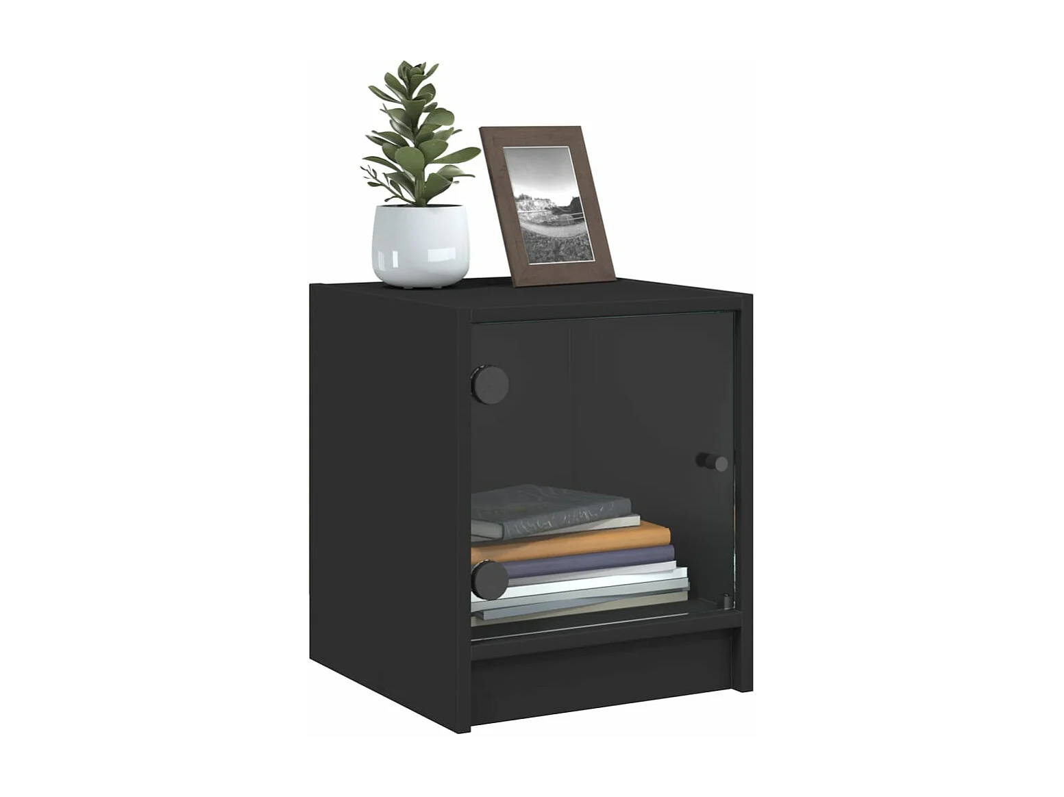 Mesa de cabeceira c/ porta de vidro 35x37x42 cm preto