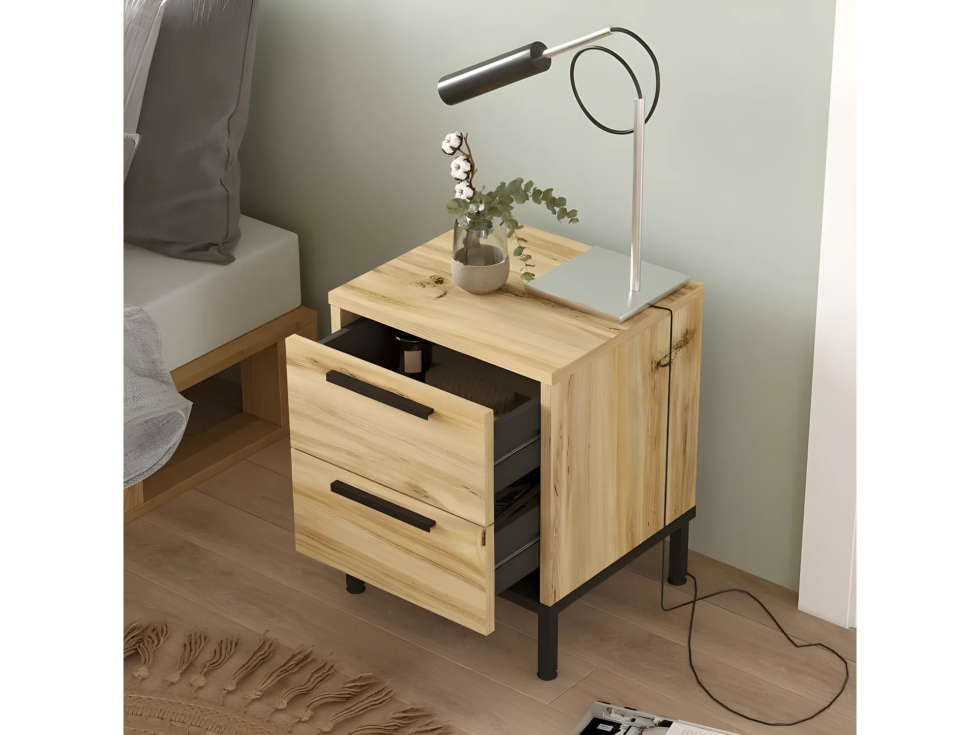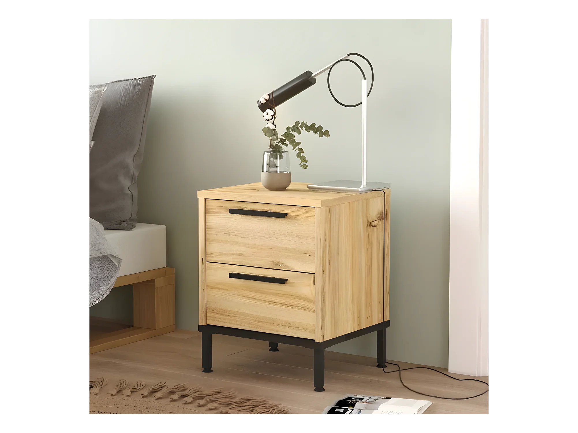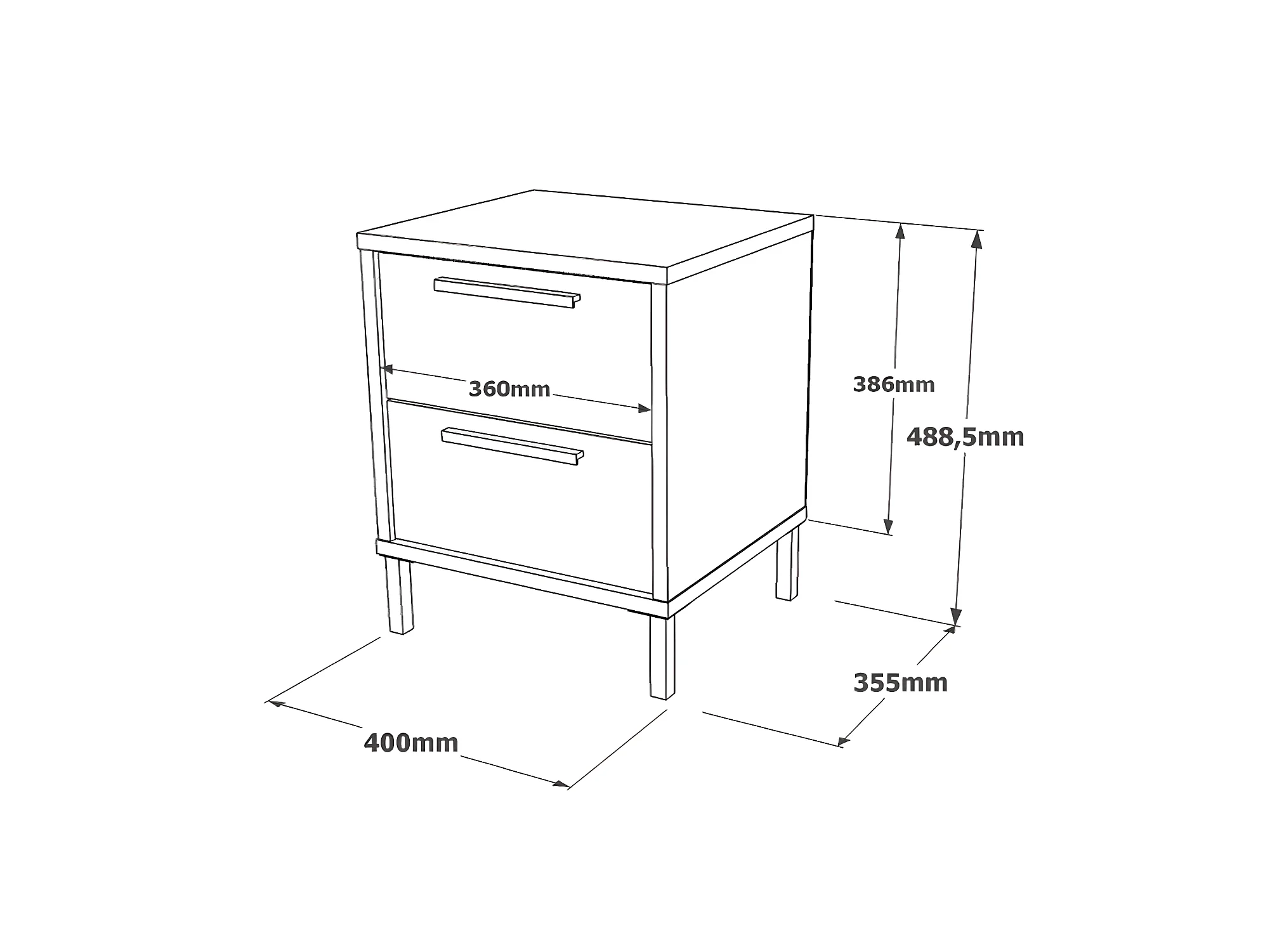 Mesa de cabeceira com 2 gavetas e pés de metal - Venprodin - feltro 35 cm - preto