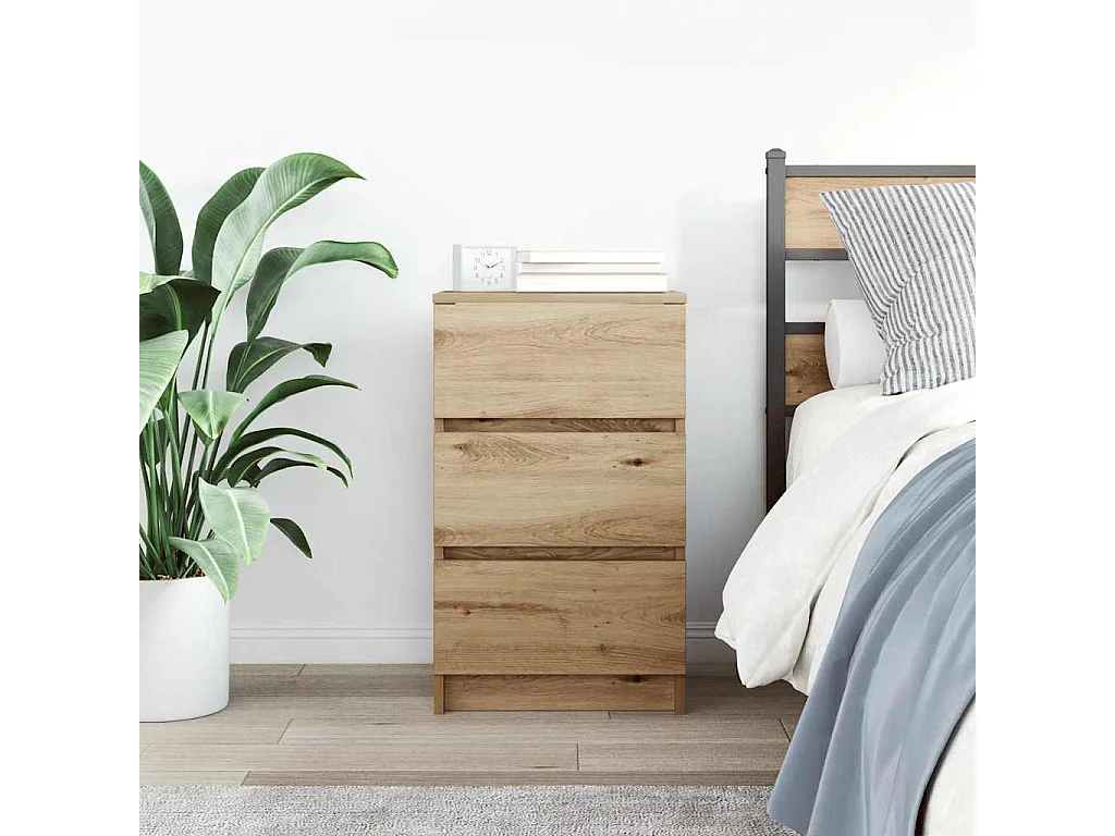 Mesa de cabeceira com 3 gavetas 39x35x65 cm carvalho sonoma