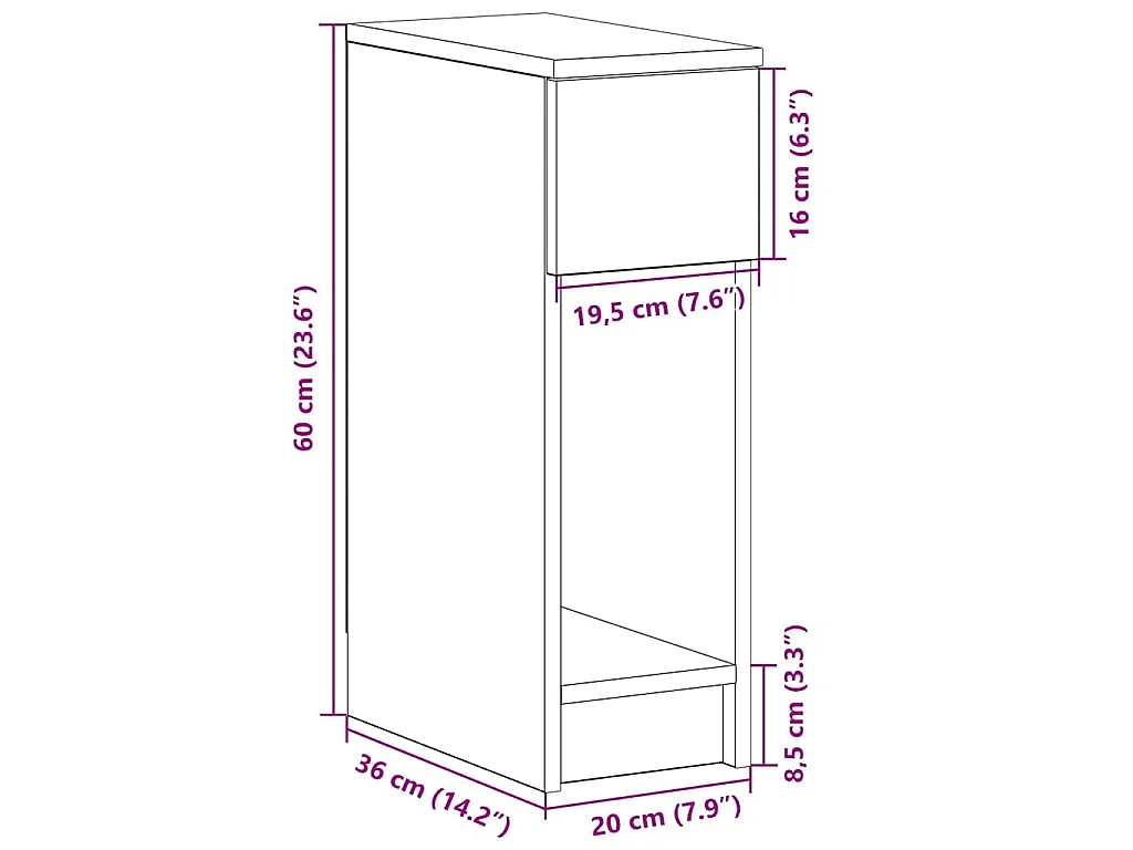 Mesa de cabeceira com gaveta 20x36x60 cm carvalho sonoma