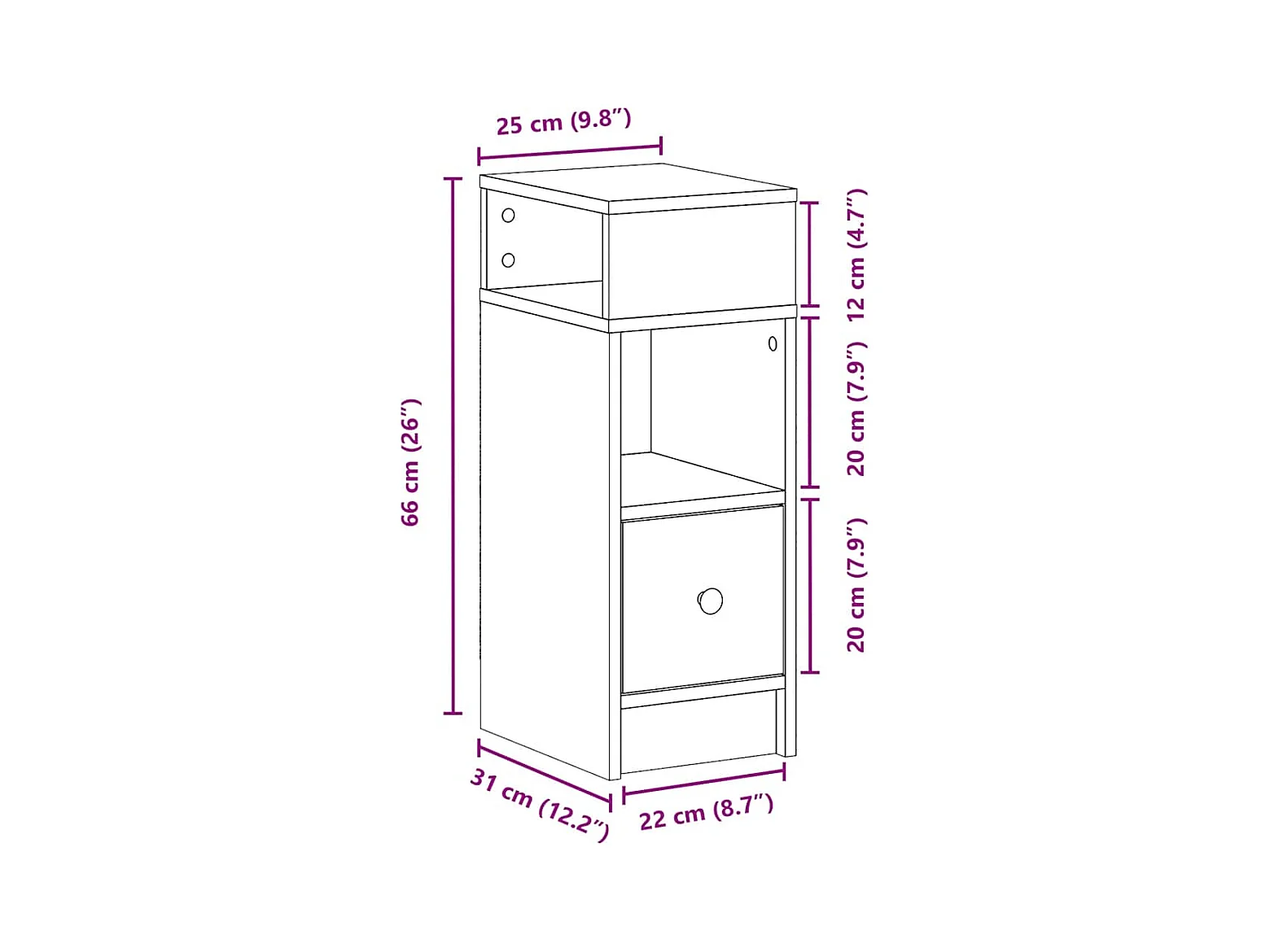 Mesa de cabeceira com gaveta 25x31x66 cm preto