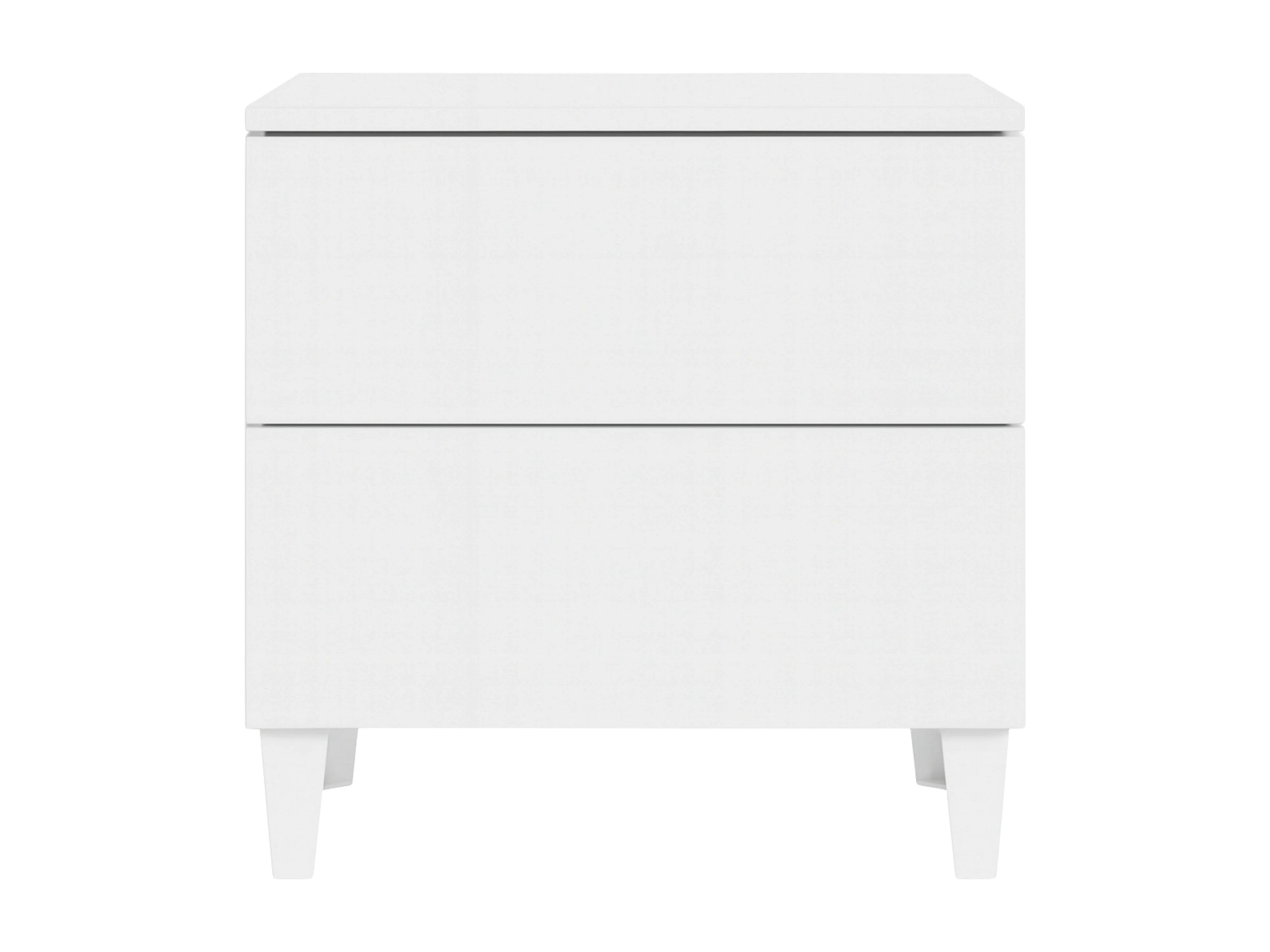 Mesa de cabeceira com duas gavetas, coleção LUCIA. Cor branca.