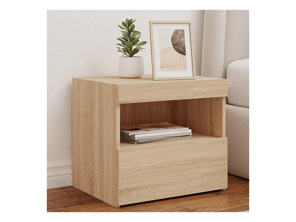 Mesa de cabeceira com luzes LED 50x40x45 cm carvalho sonoma
