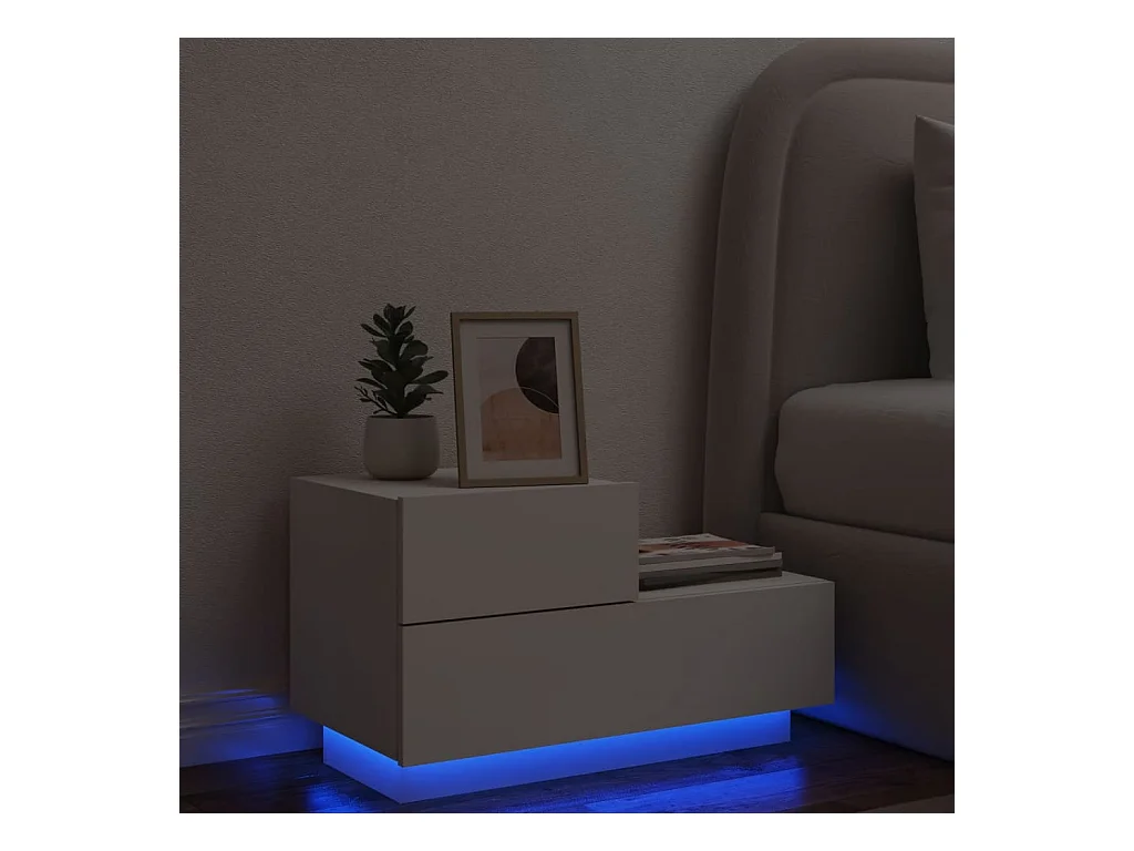 Mesa de cabeceira com luzes LED 70x36x40,5 cm branco PT19948