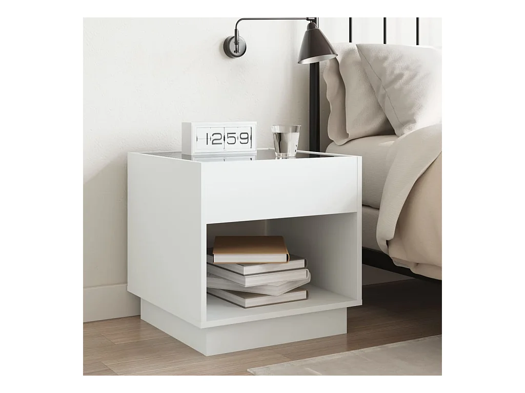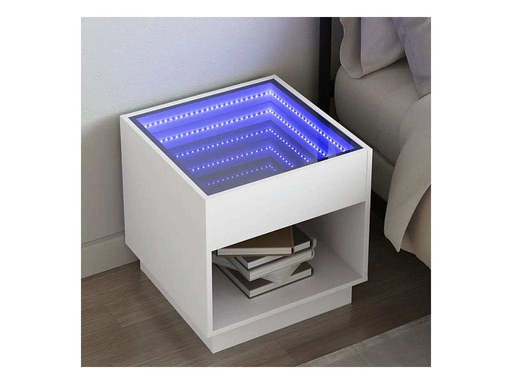 Mesa de cabeceira com luzes LED Infinity 40x40x30 cm branco