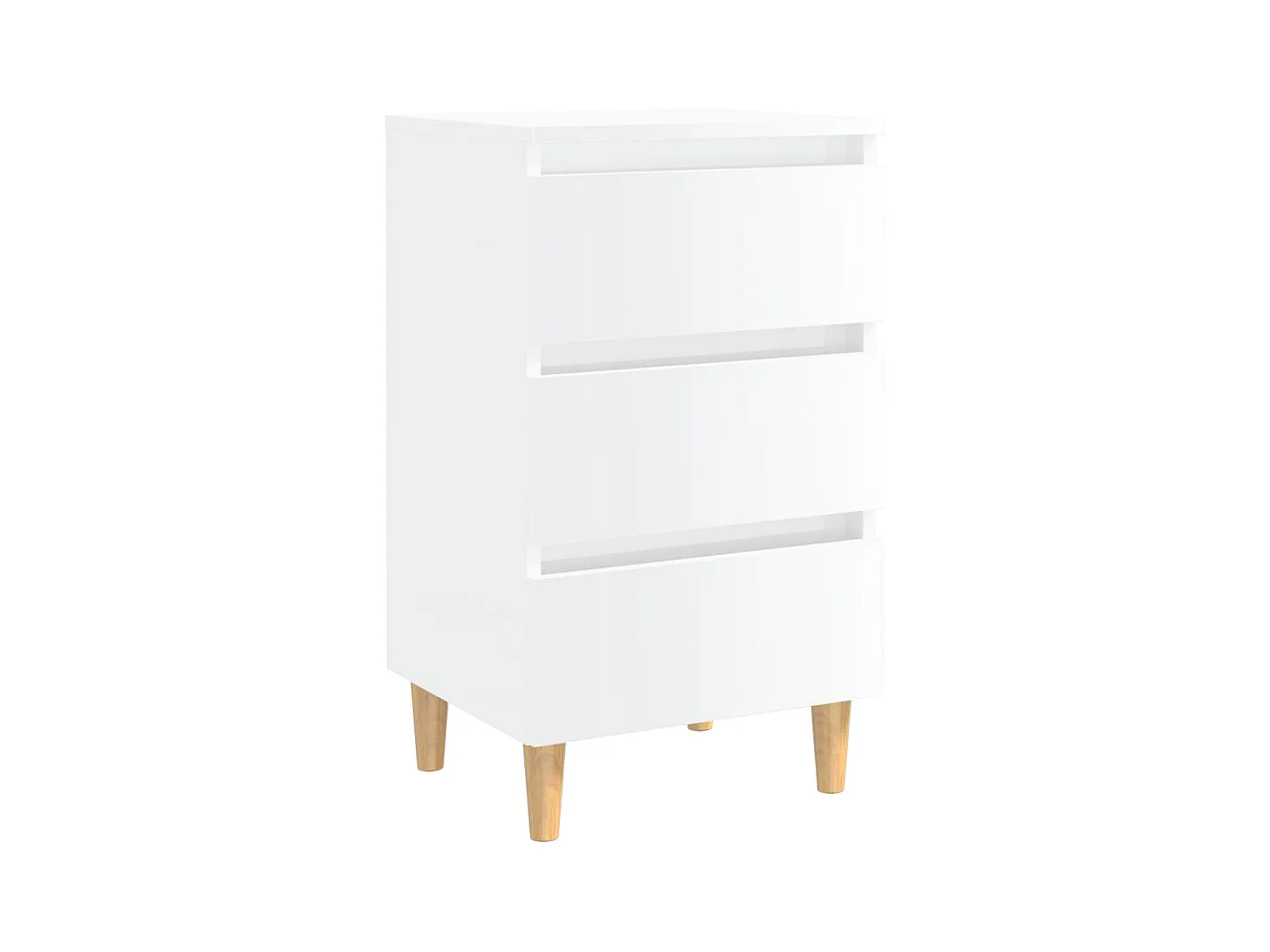 Mesa de cabeceira com pés de madeira Branco brilhante 40x35x69 cm