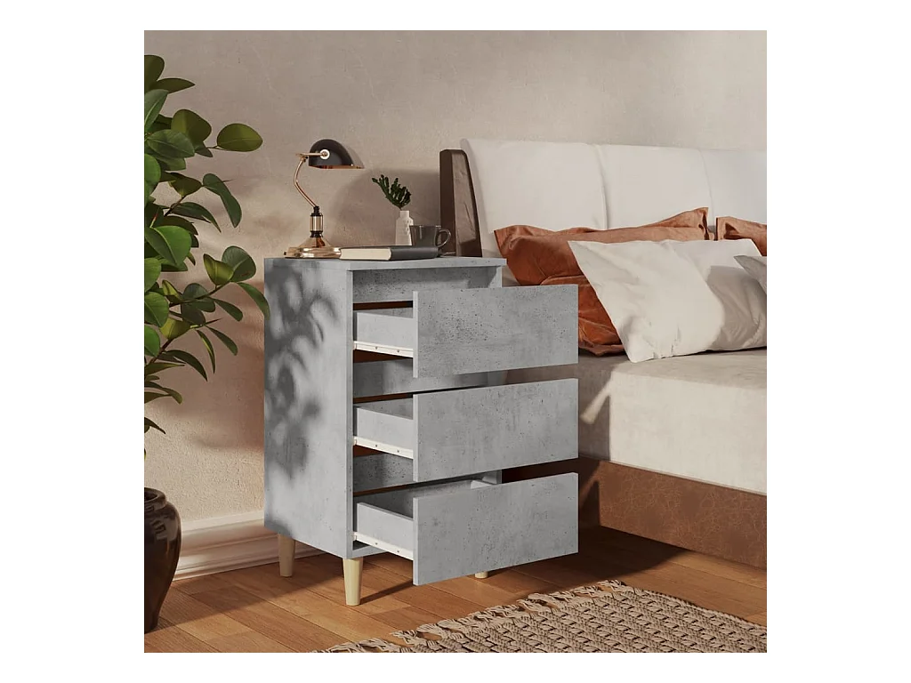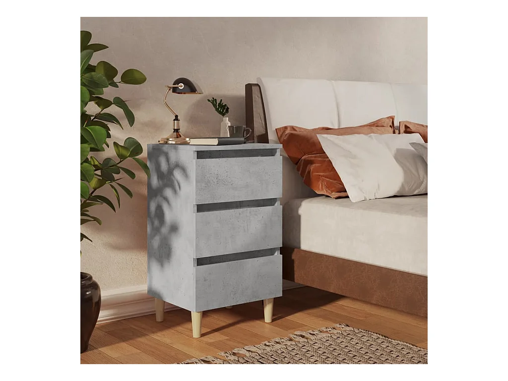 Mesa de cabeceira com pés de madeira maciça cinza concreto 40x35x69cm