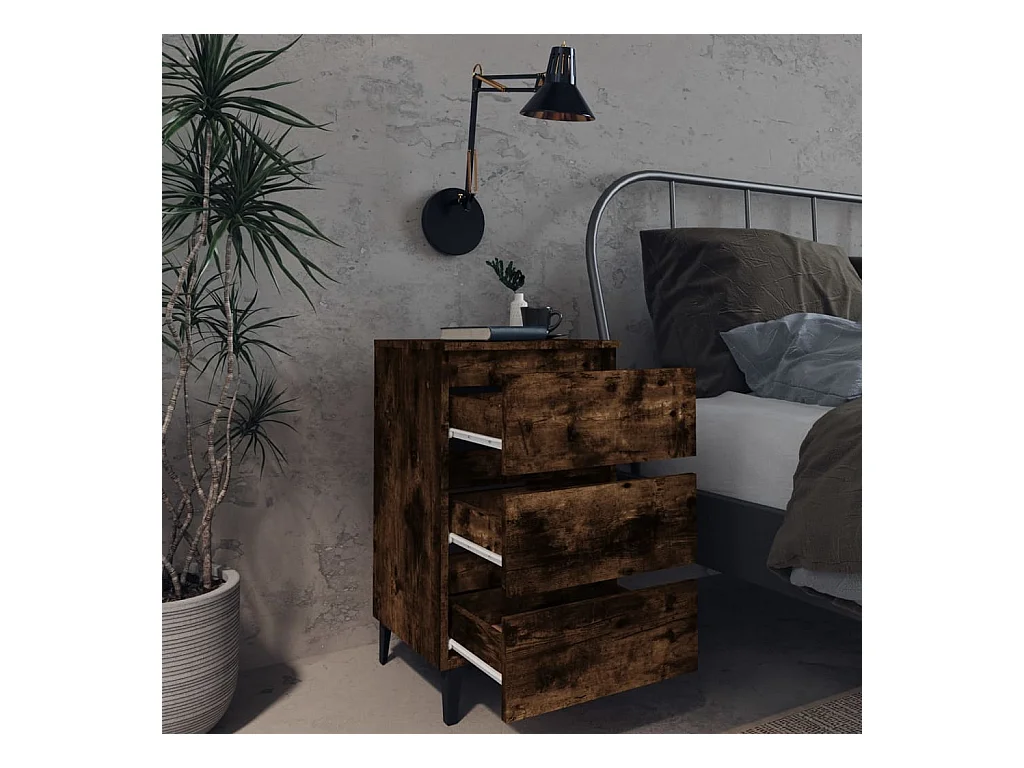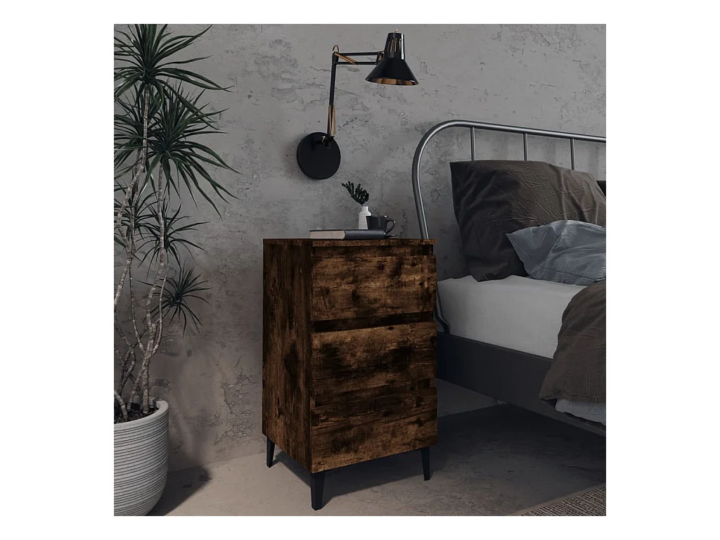 Mesa de cabeceira com pés de metal Carvalho fumado 40x35x69 cm