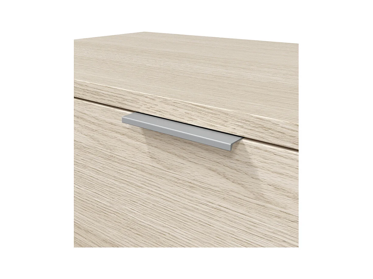 Mesa de Cabeceira com 2 Gavetas e Nicho – Cor bege – Pés retos e puxadores pretos – Coleção Aurora