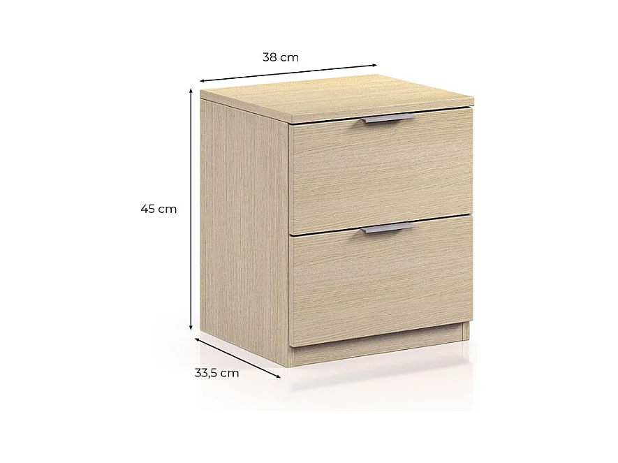 Mesa de cabeceira moderna de carvalho com 2 gavetas 45x38x34 cm quarto