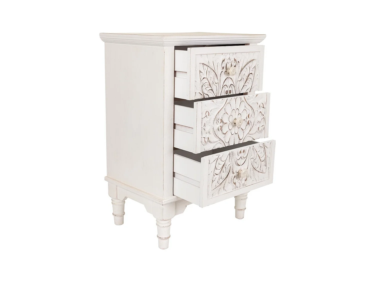 Mesa de cabeceira Hill 46x35x49,5 cm pinho maciço branco PT18855
