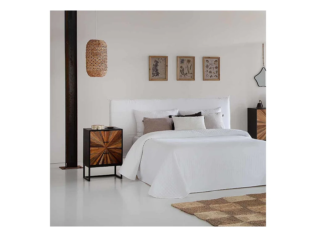 Mesa de cabeceira pinho maciço e vime natural castanho PT71067