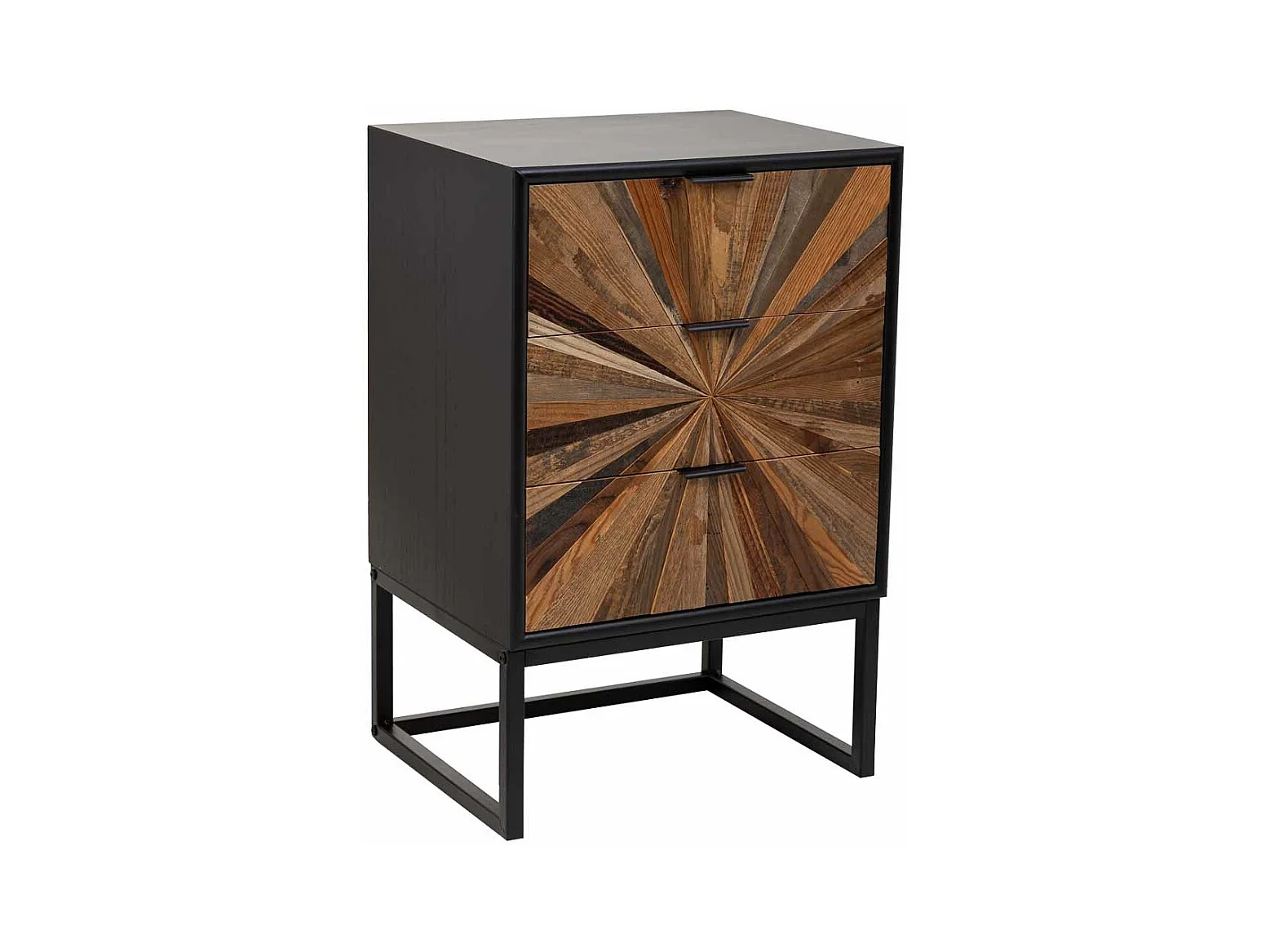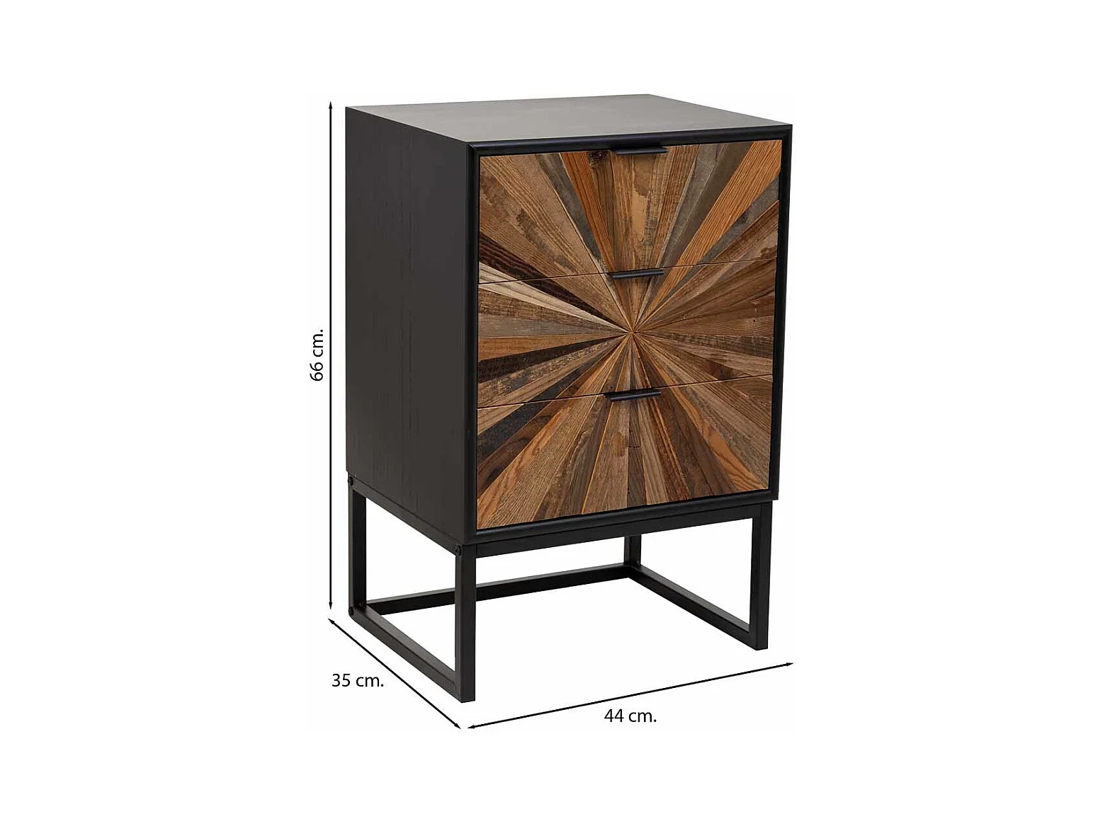 Mesa de cabeceira de madeira e metal com 3 gavetas castanha 44x35x66
