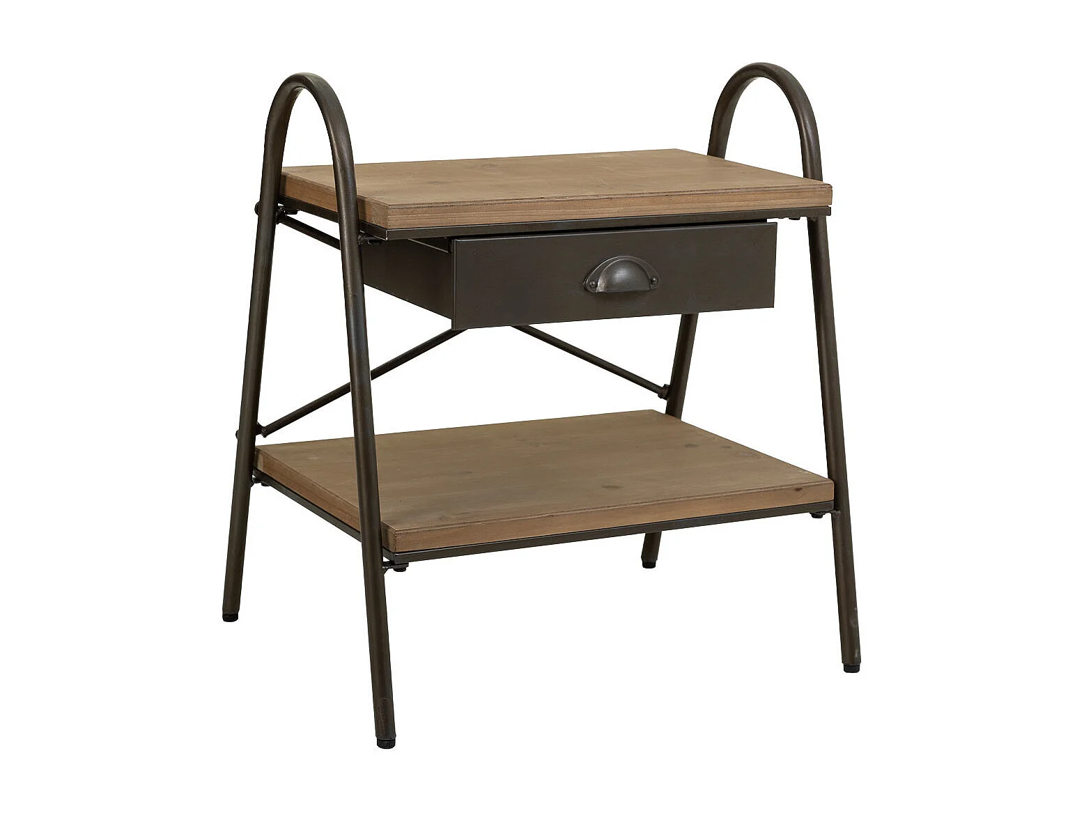 Mesa de centro madeira castanha e metal 52x42x60h cm