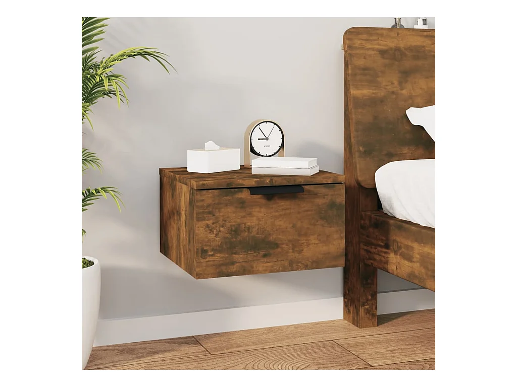 Mesa de cabeceira de montagem na parede cor carvalho fumado PT71506