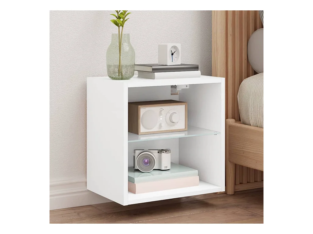 Mesas de cabeceira de parede com luzes LED 2 pcs branco PT52943