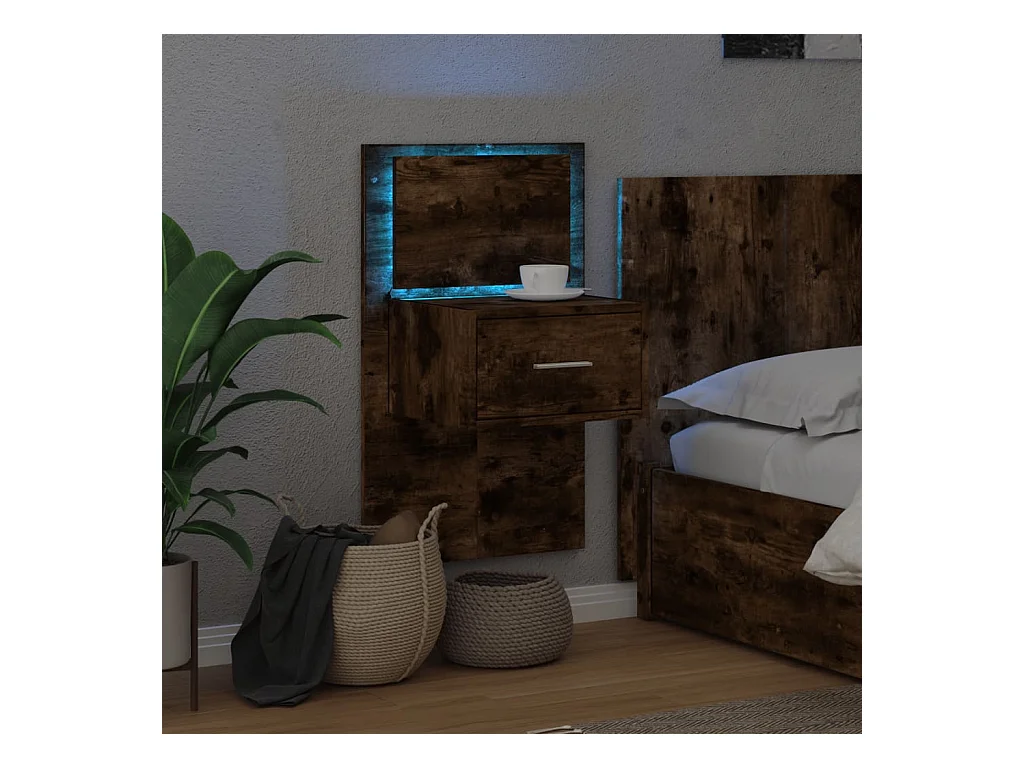 Mesas de cabeceira de parede com luzes LED 2pcs carvalho fumado PT29578