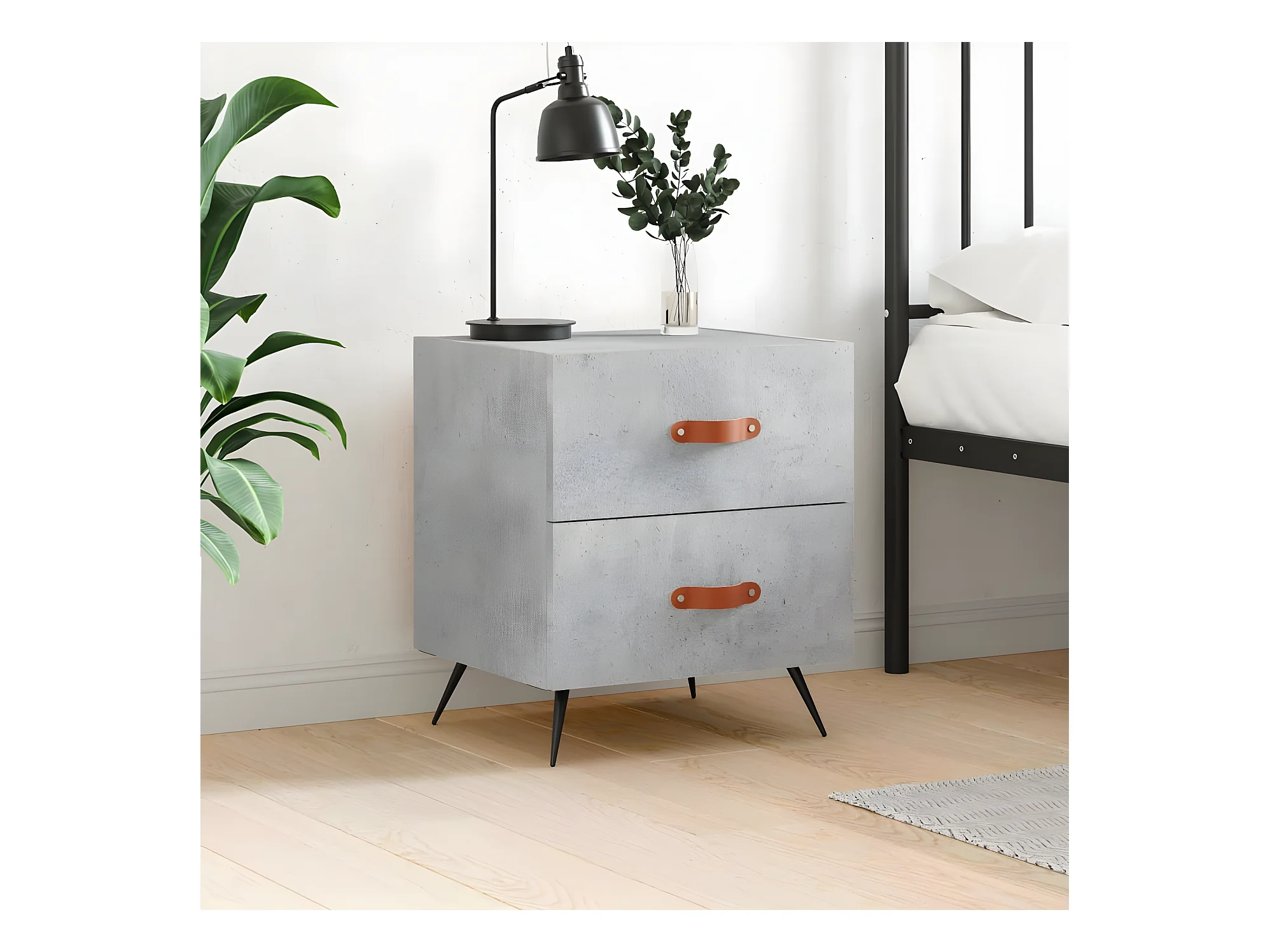 Mesa de cabeceira madeira processada cinzento-cimento