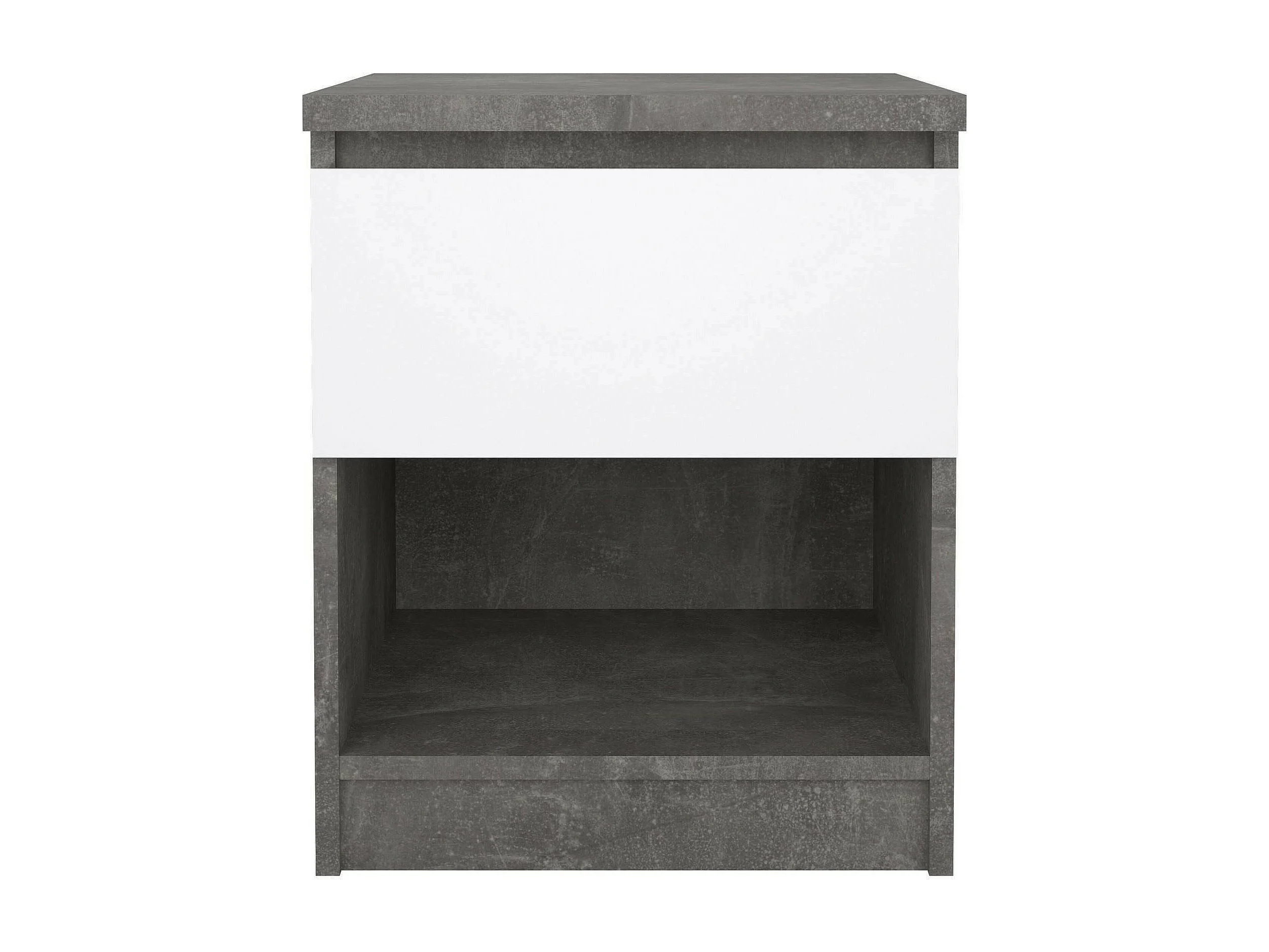 Mesa de cabeceira Azar, Cómoda baixa, Mesa de cabeceira, Prateleira de cama, 50x40 h50 cm, Cimento e Branco brilhante