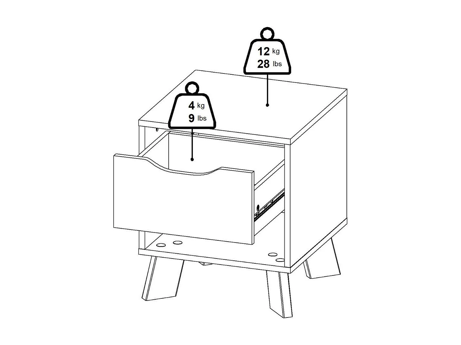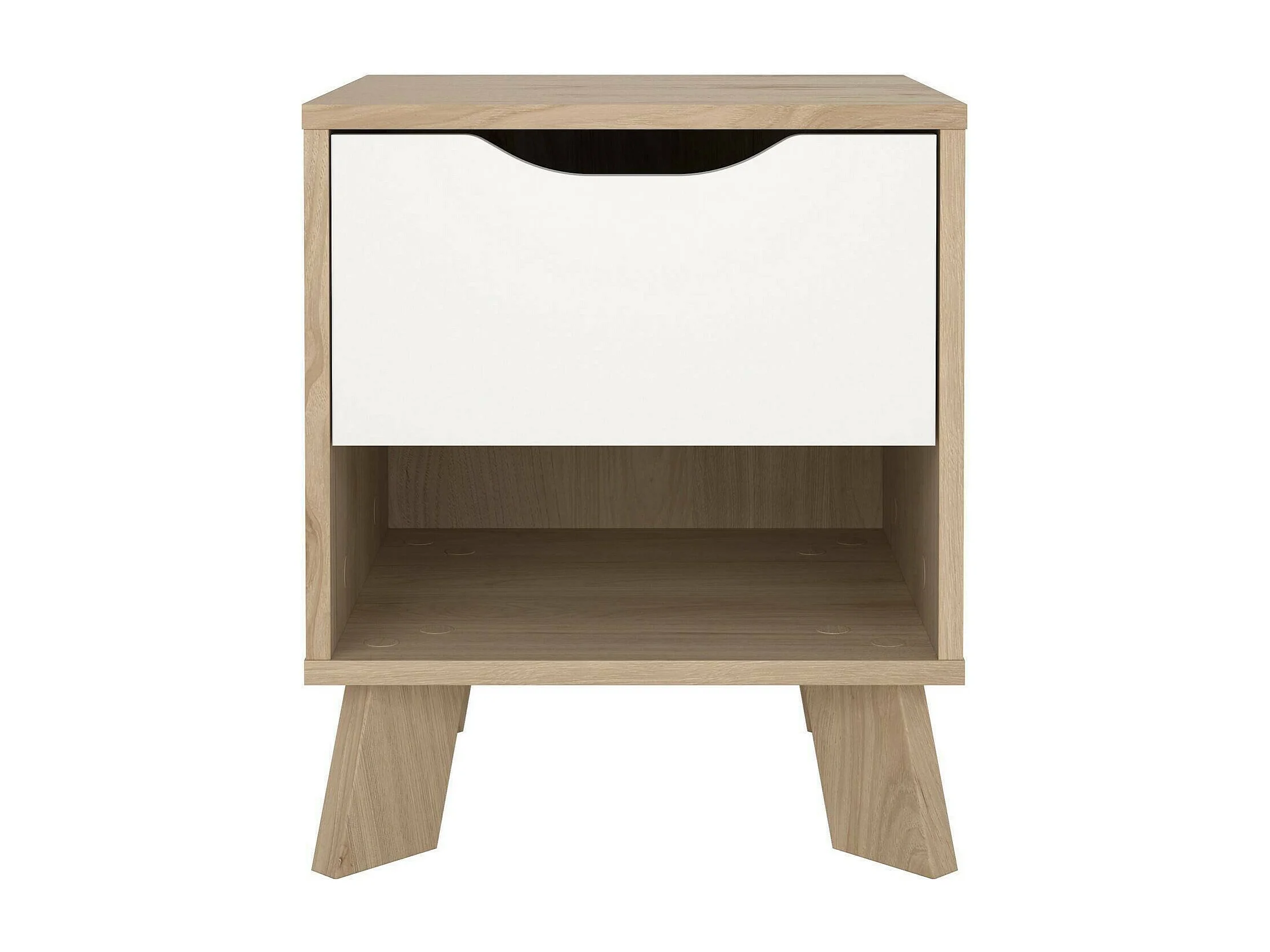 Mesa de cabeceira Drossitt, Cómoda baixa, Mesa de cabeceira, Prateleira de cama, 40x40 h47 cm, Carvalho e Branco