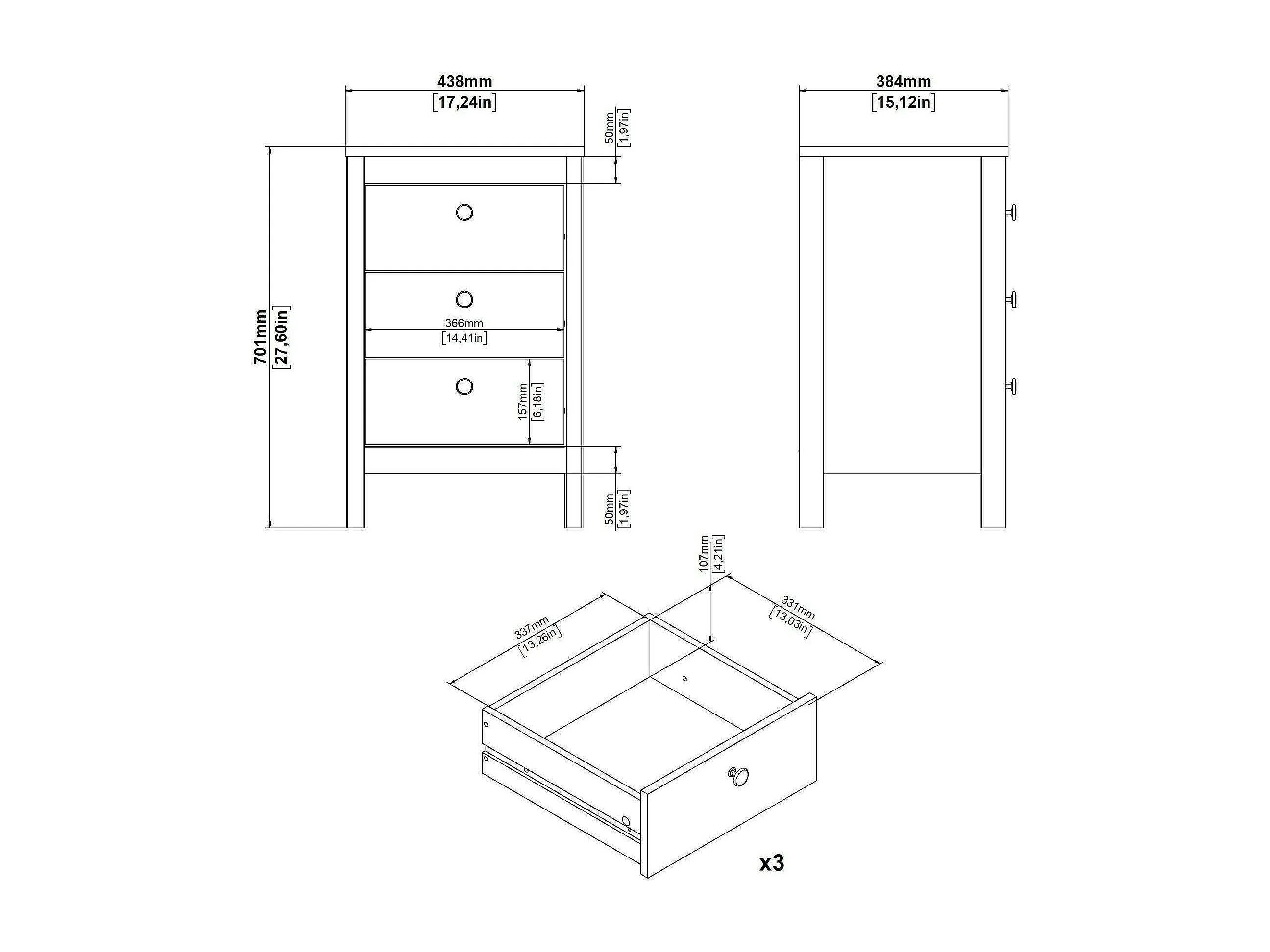 Mesa de cabeceira Dsain, Cómoda baixa, Mesa de cabeceira, Prateleira de cama, 44x38 h70 cm, Branco