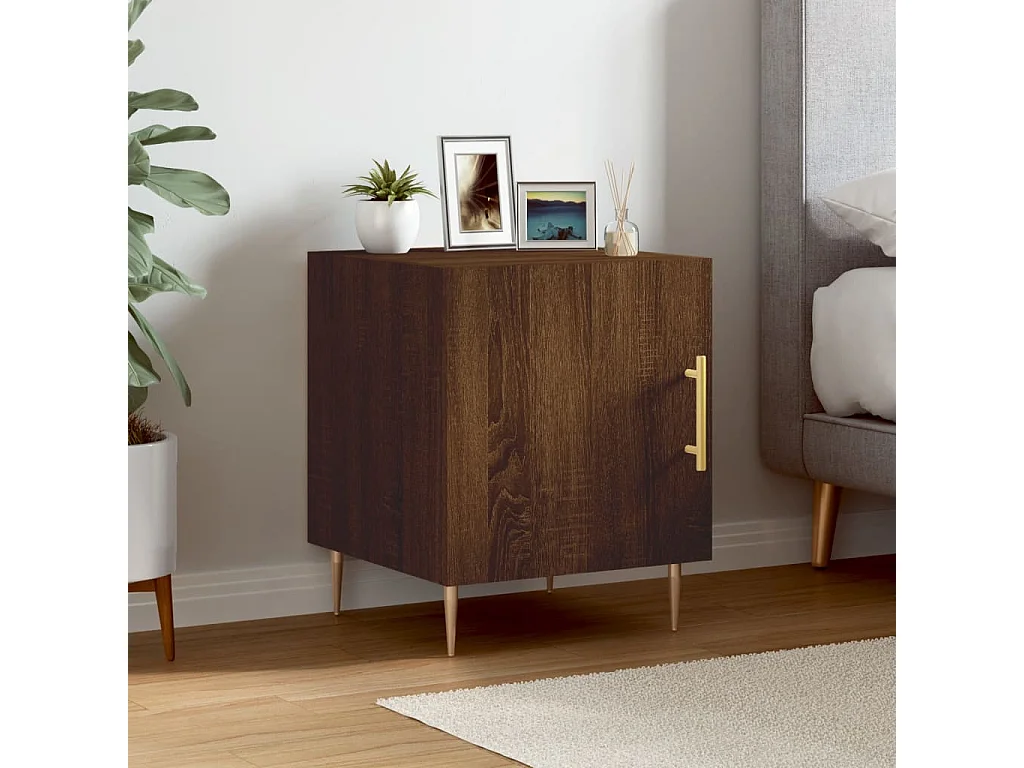 Mesa de cabeceira em carvalho castanho 40x40x50 cm madeira trabalhada