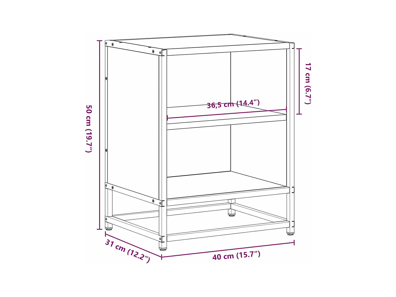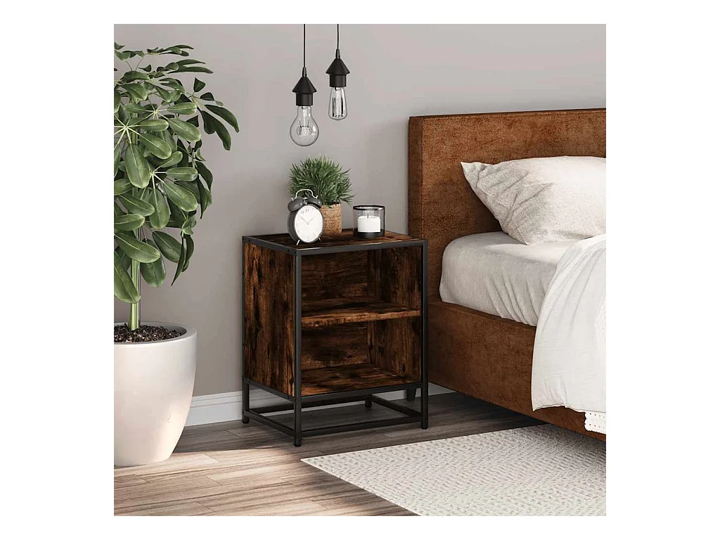 Mesa de cabeceira em carvalho fumado 40x31x50cm madeira e metal