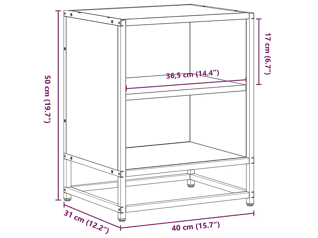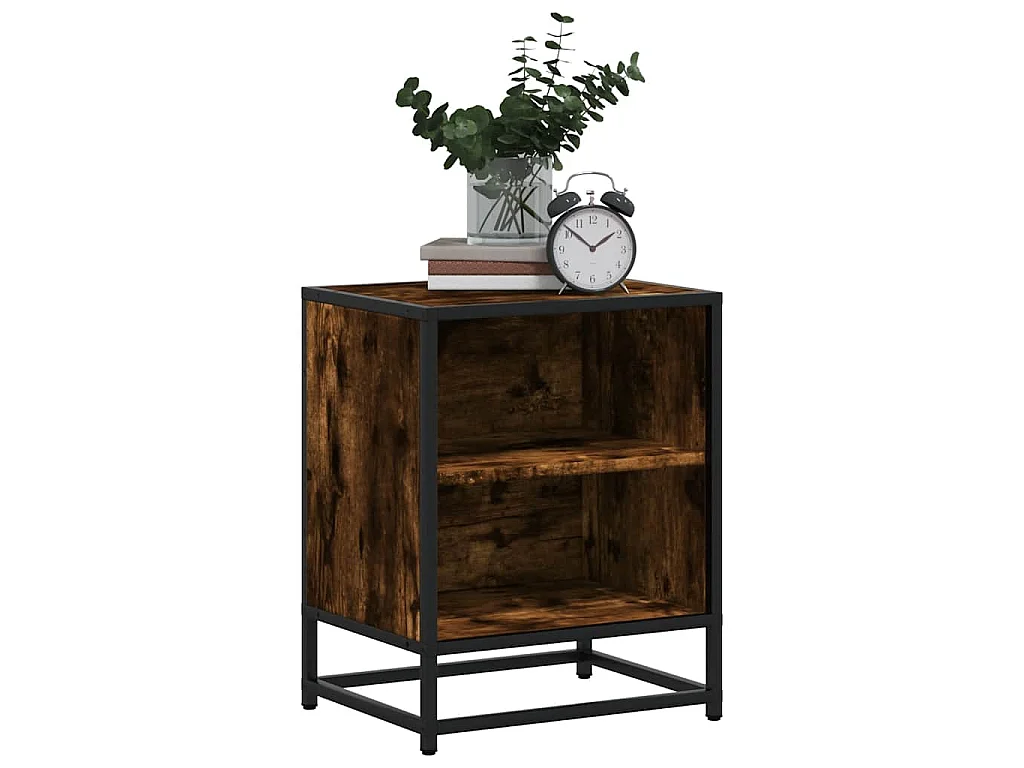 Mesa de cabeceira em carvalho fumado 40x31x50cm madeira e metal