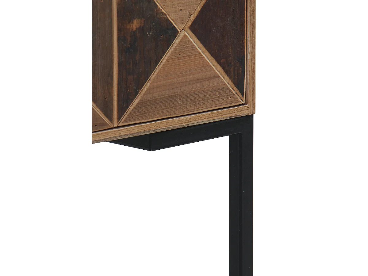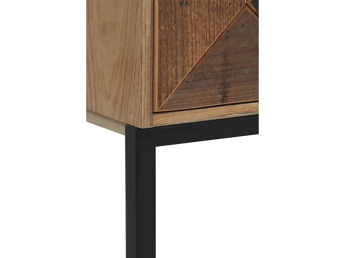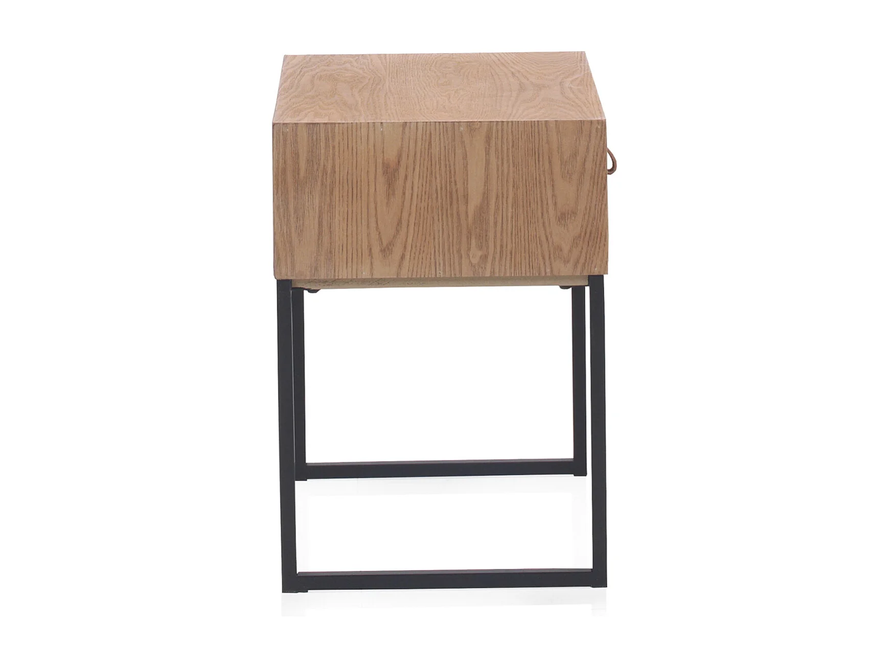 Mesa de cabeceira em madeira de freixo reciclado com 1 gaveta e base metálica