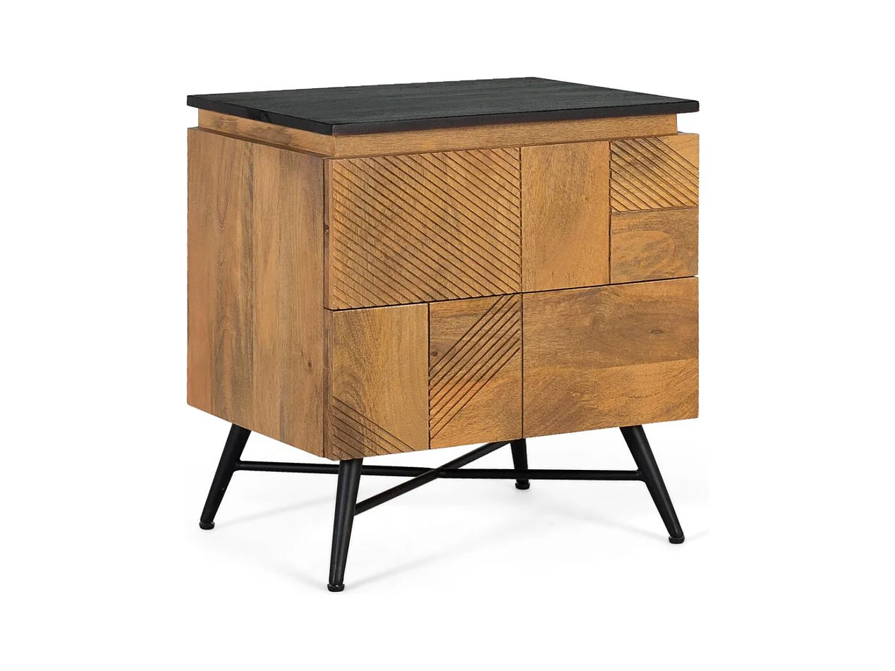 Mesa de cabeceira feita à mão em madeira de manga com veios naturais