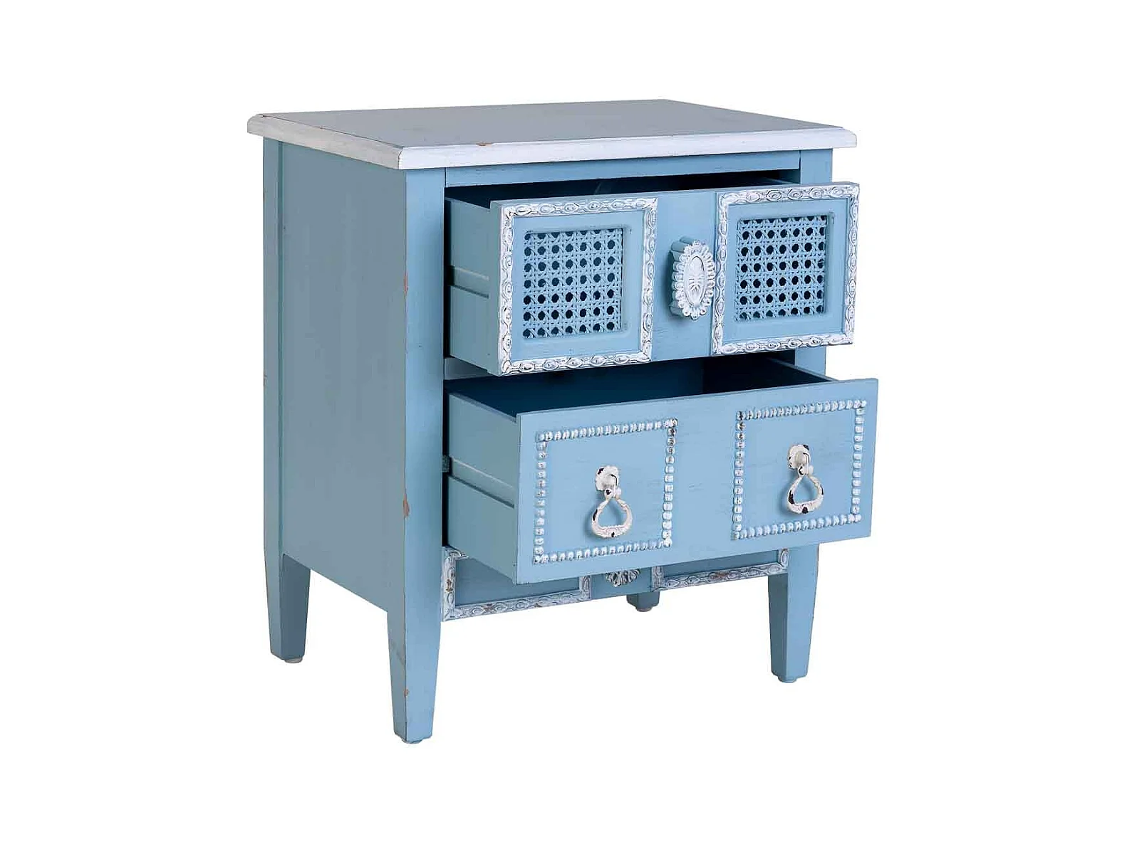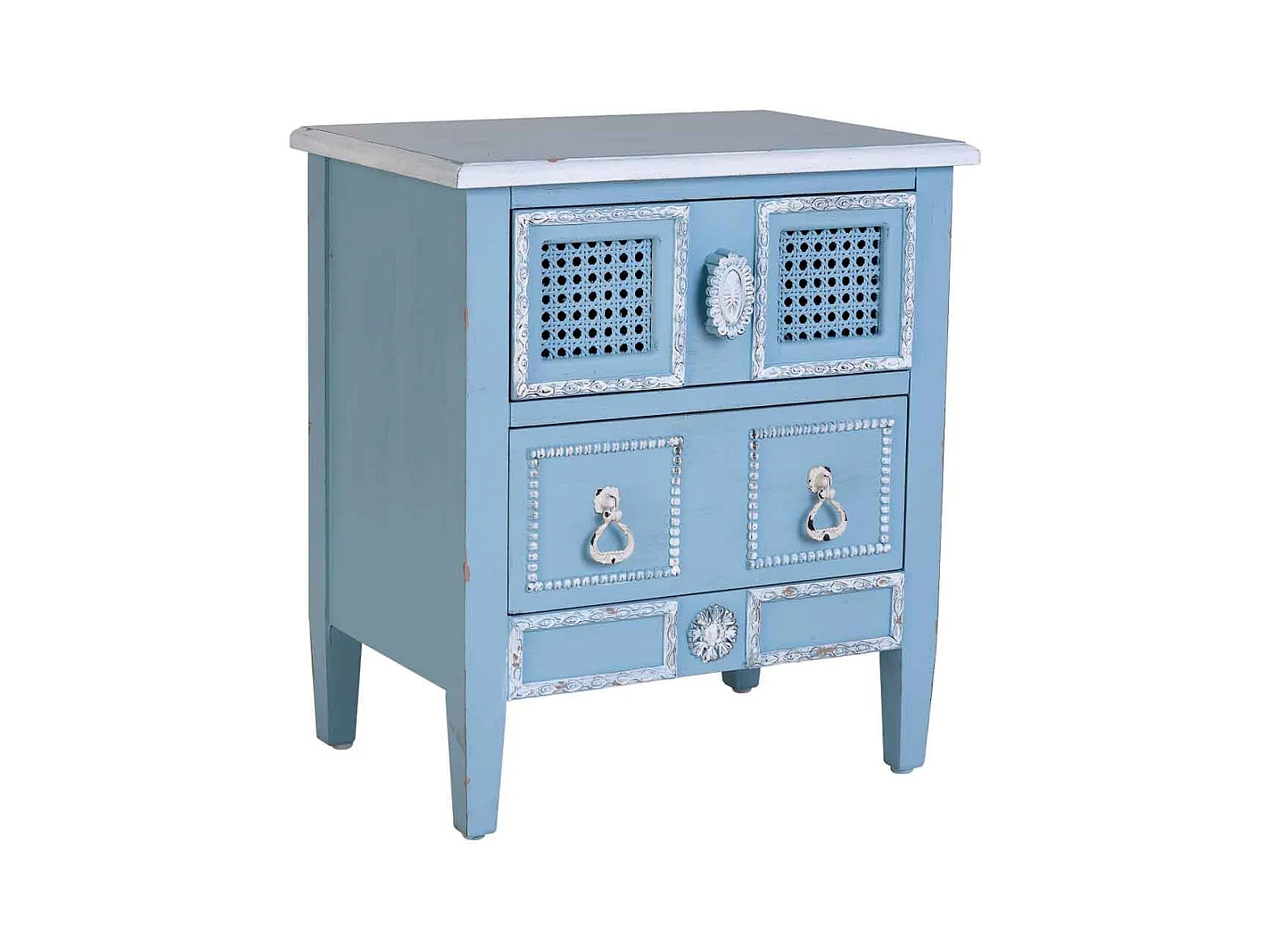 Mesa cabeceira madeira mangueira maciça turquesa pintada à mão PT64775