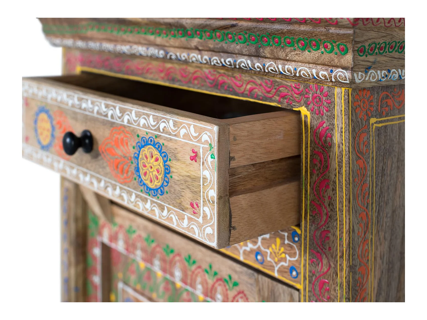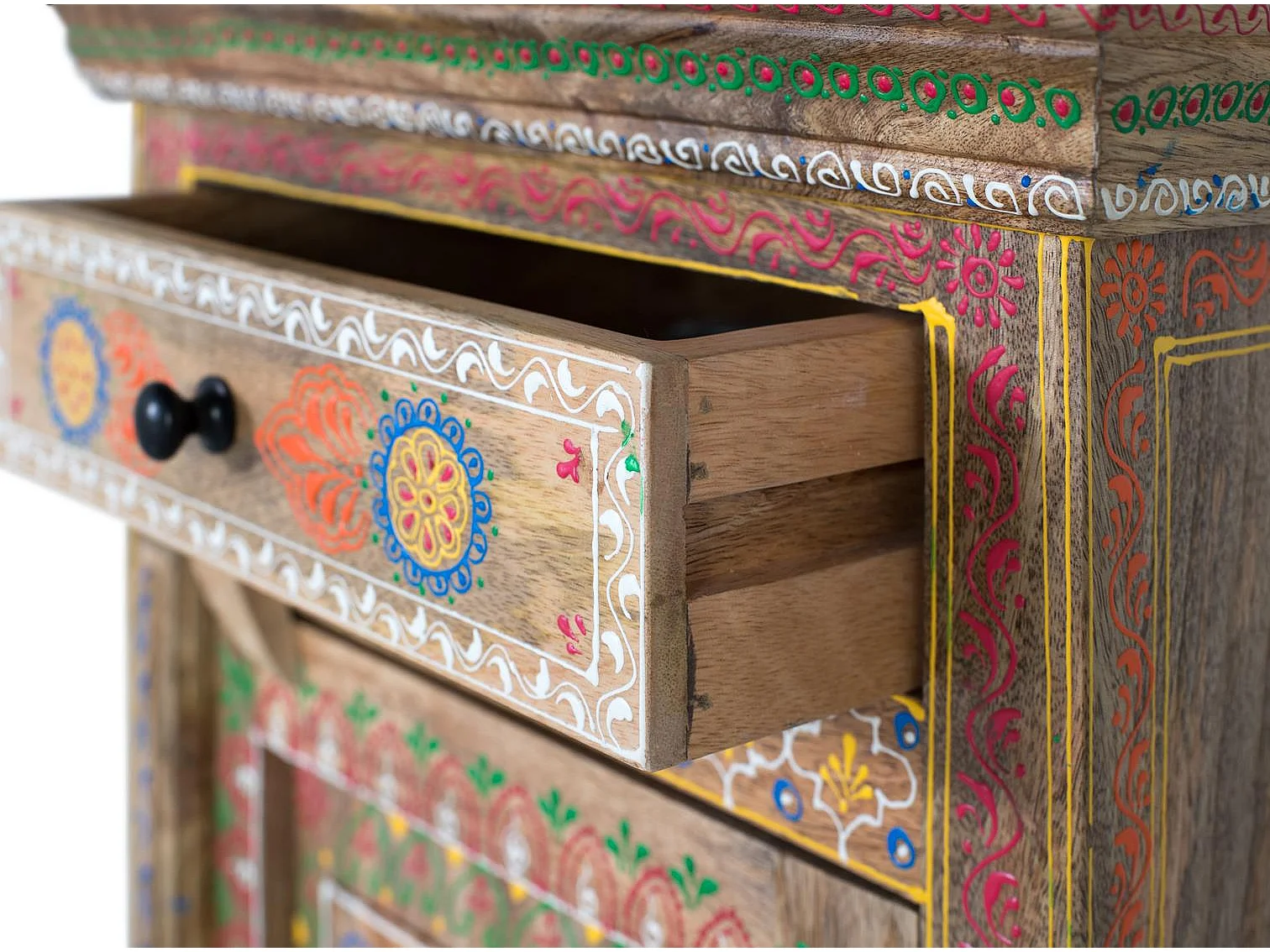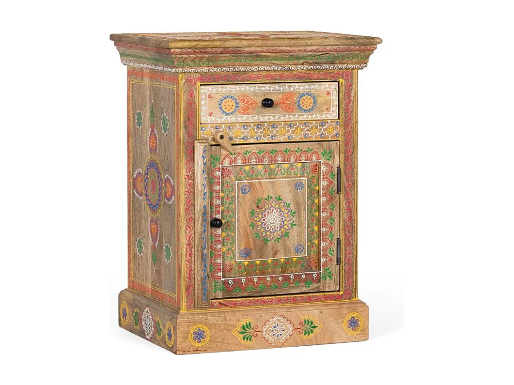 Mesa de noite realizada e pintada à mão em madeira de manguier