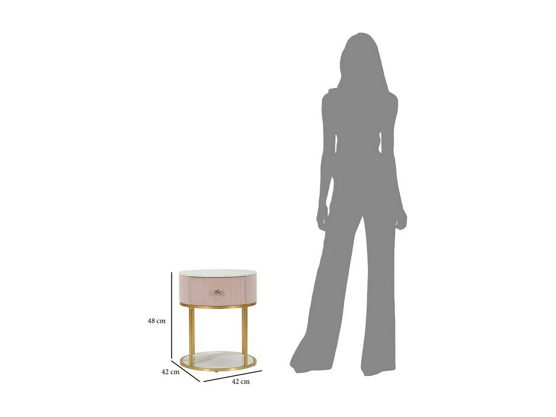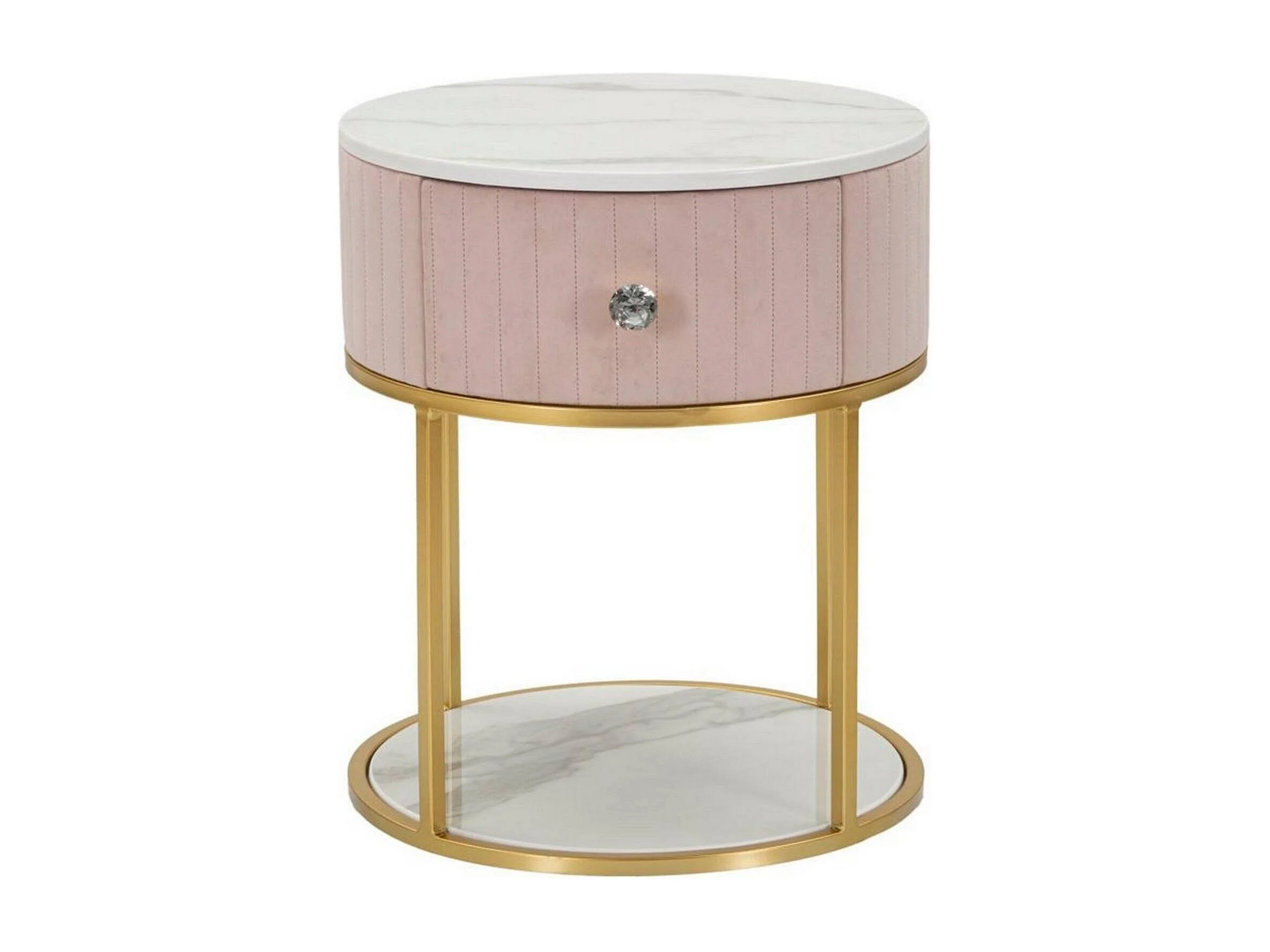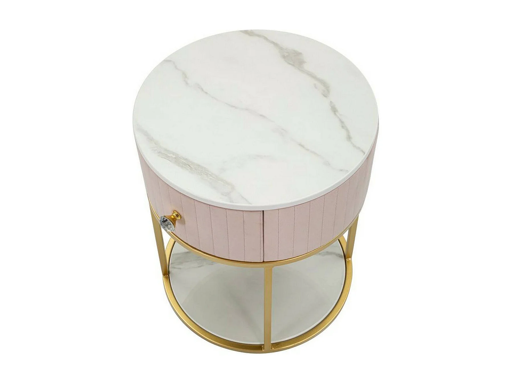 Mesa de cabeceira Gerhard, cómoda baixa, mesa de cabeceira, prateleira de cama, 42x42 h48 cm, rosa e branco