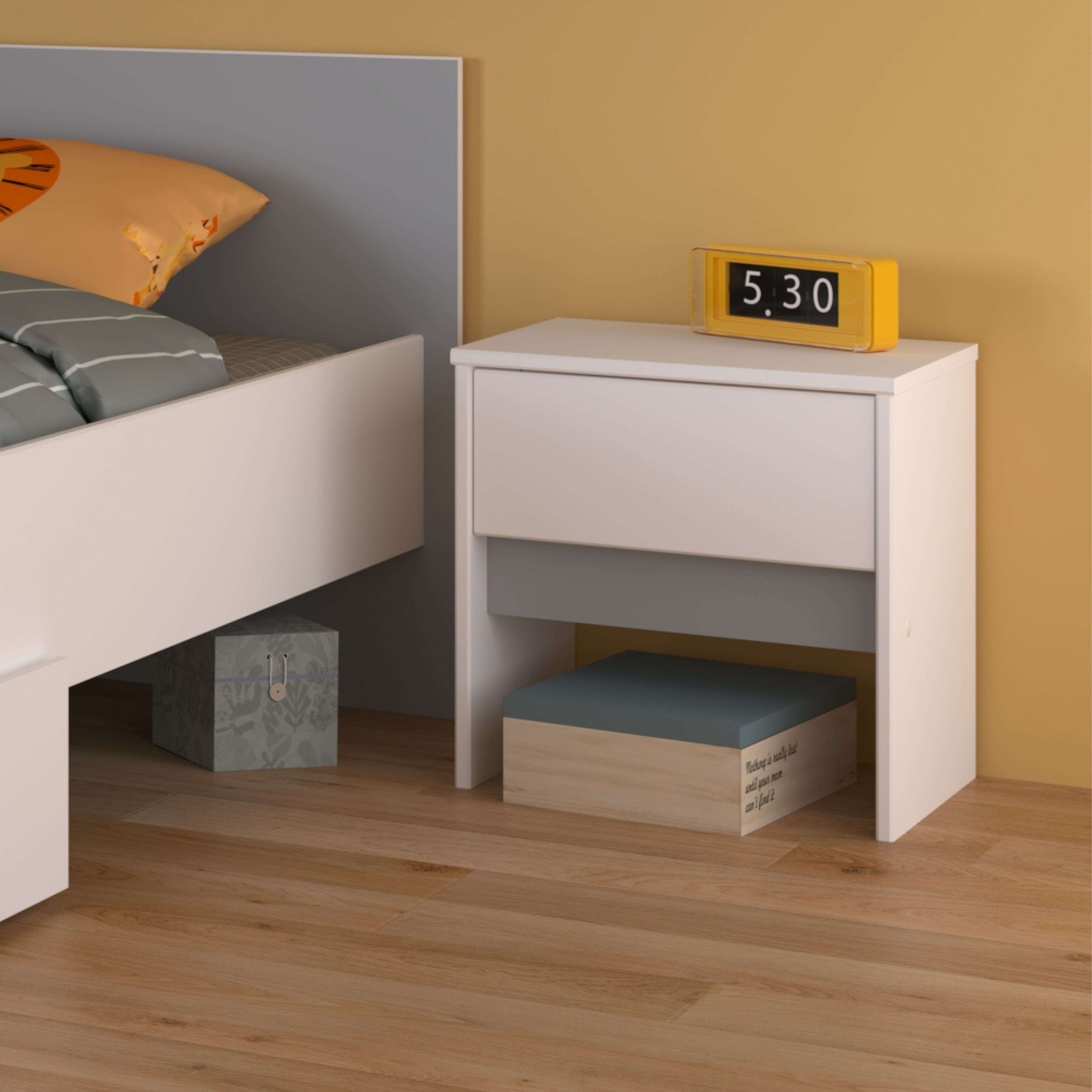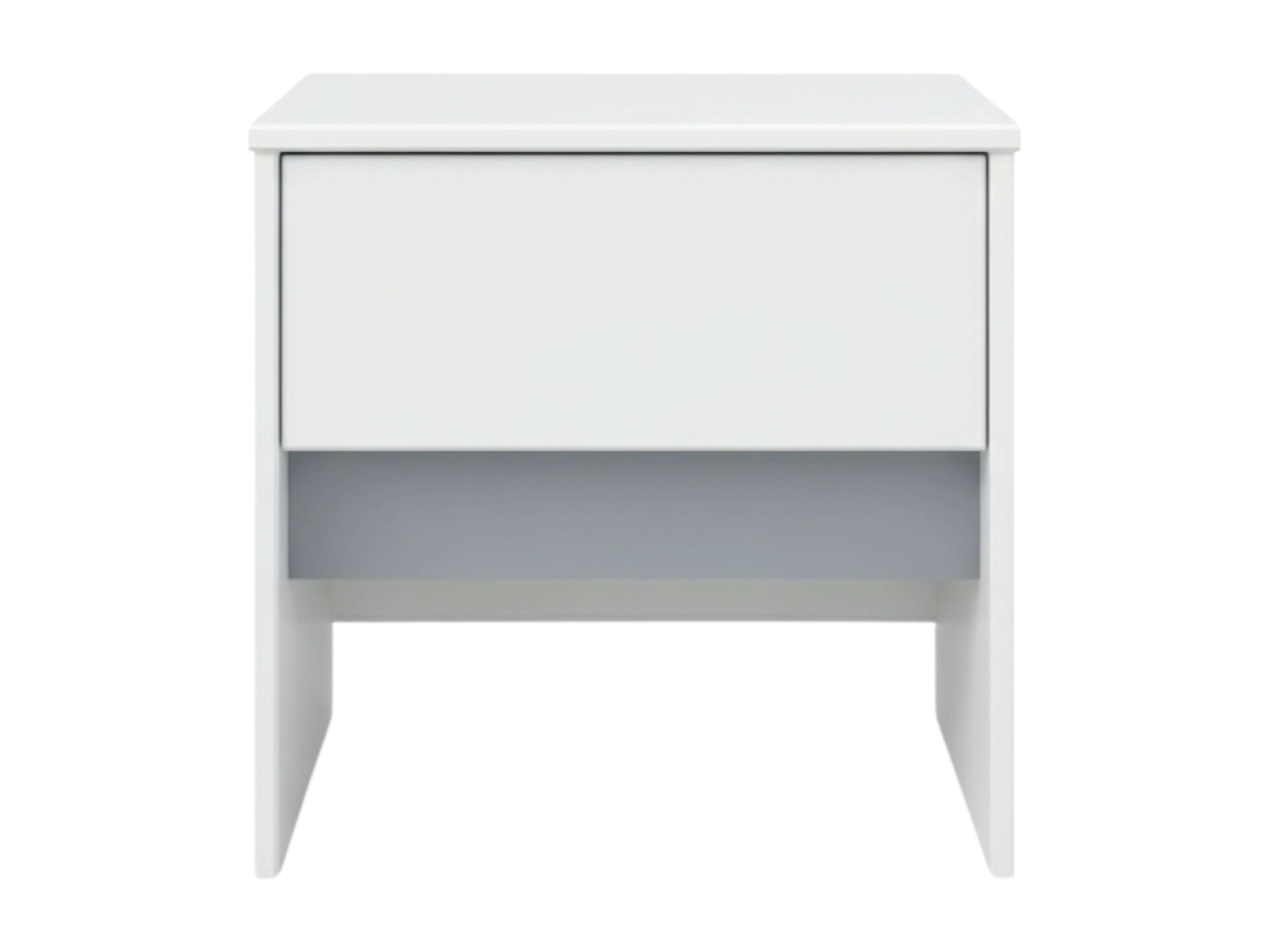 Mesa de cabeceira Germain 1 gaveta branco fosco melamina cinza 40 cm moderna