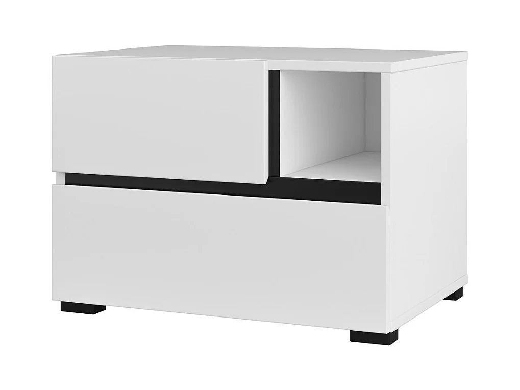 Mesa de cabeceira com duas gavetas, coleção LUCIA. Cor branca.