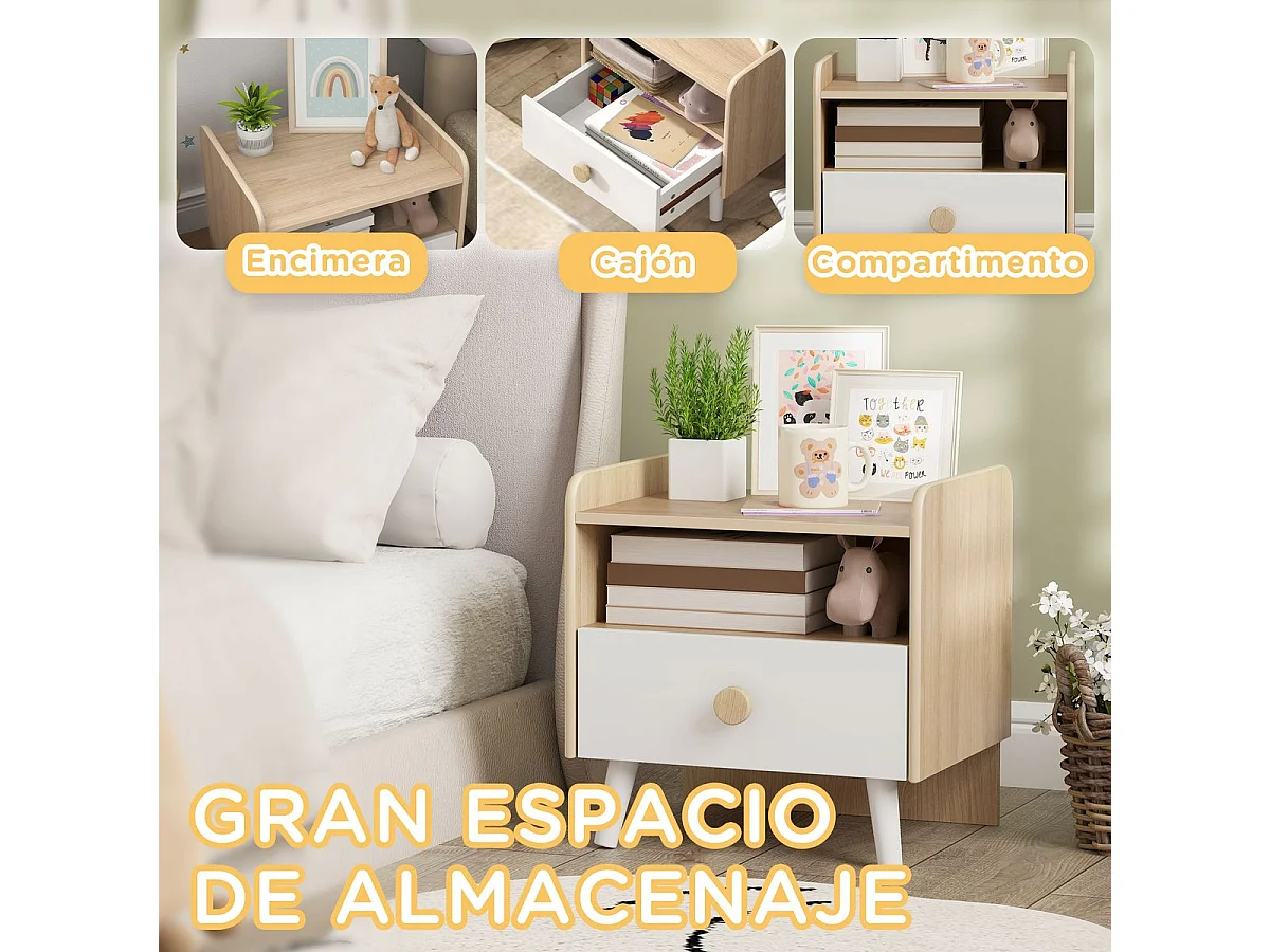 Mesa de Cabeceira Infantil AIYAPLAY de Madeira com Gaveta e Bordas Arredondadas para Crianças