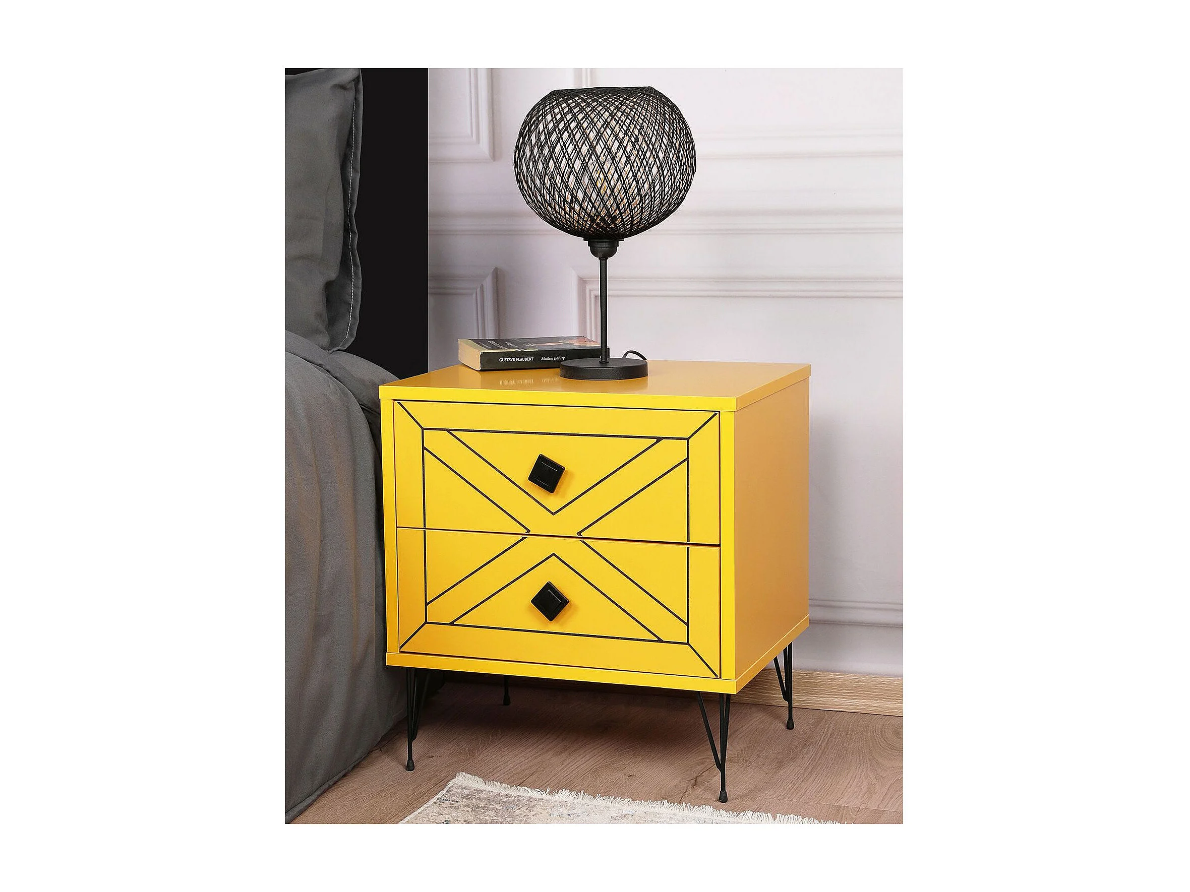 Mesa de Cabeceira Luna Amarelo Vibrante – Estilo Moderno e Funcionalidade (50 x 55 x 40 cm)
