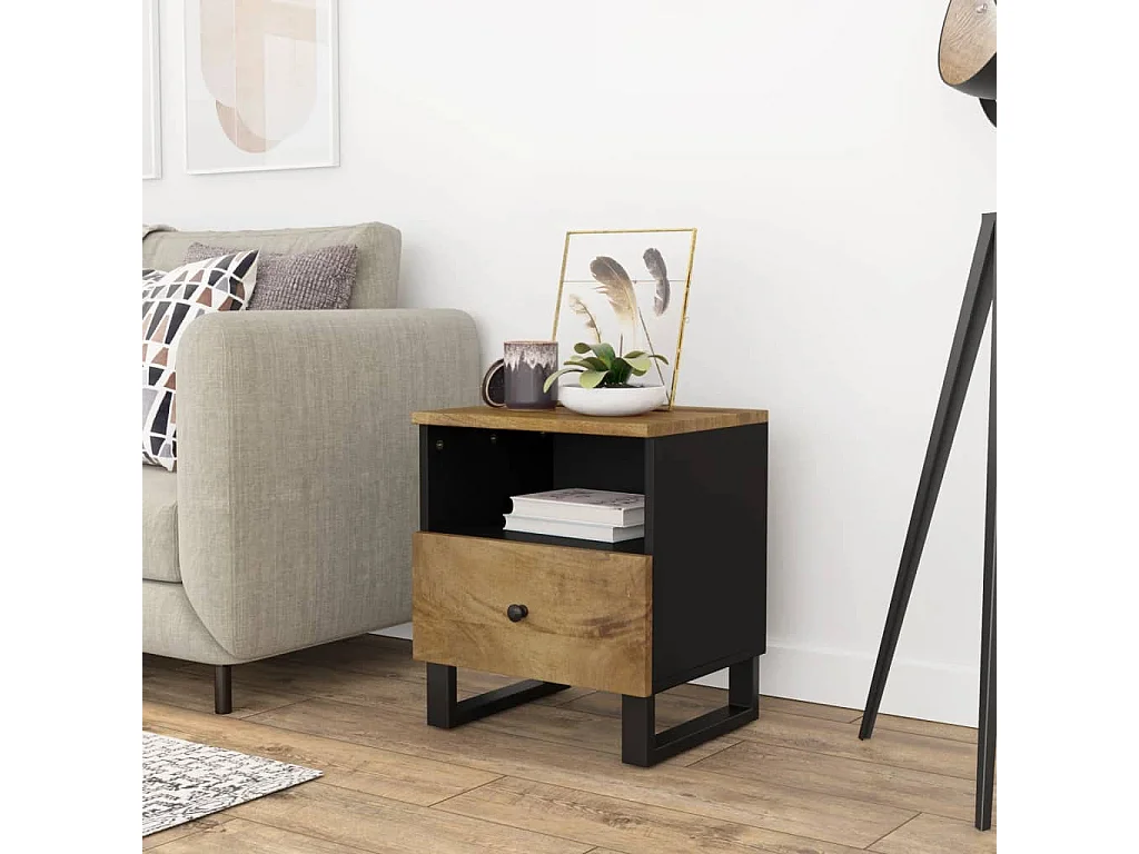 Mesa de cabeceira madeira de mangueira maciça 40x34x47 cm