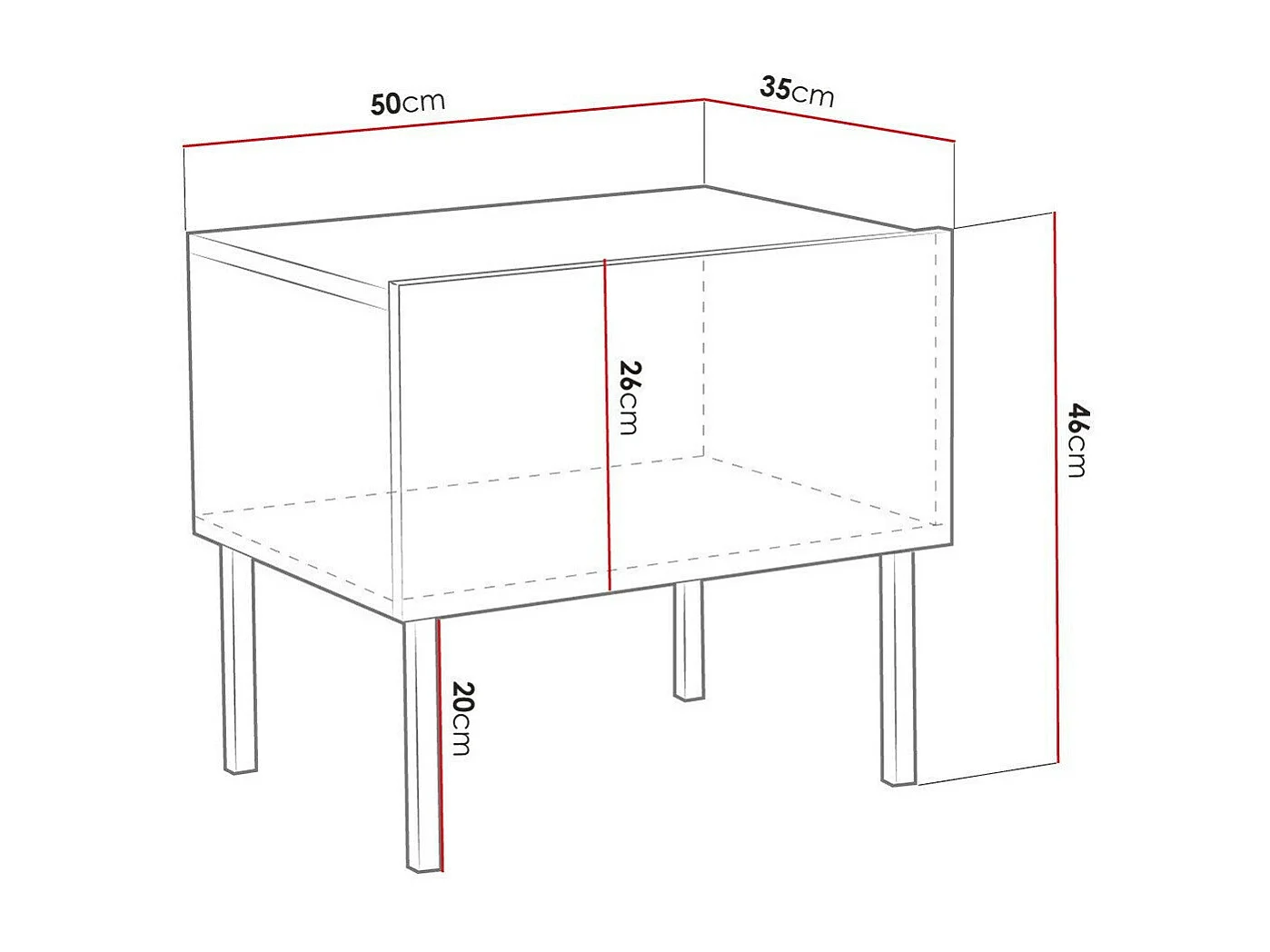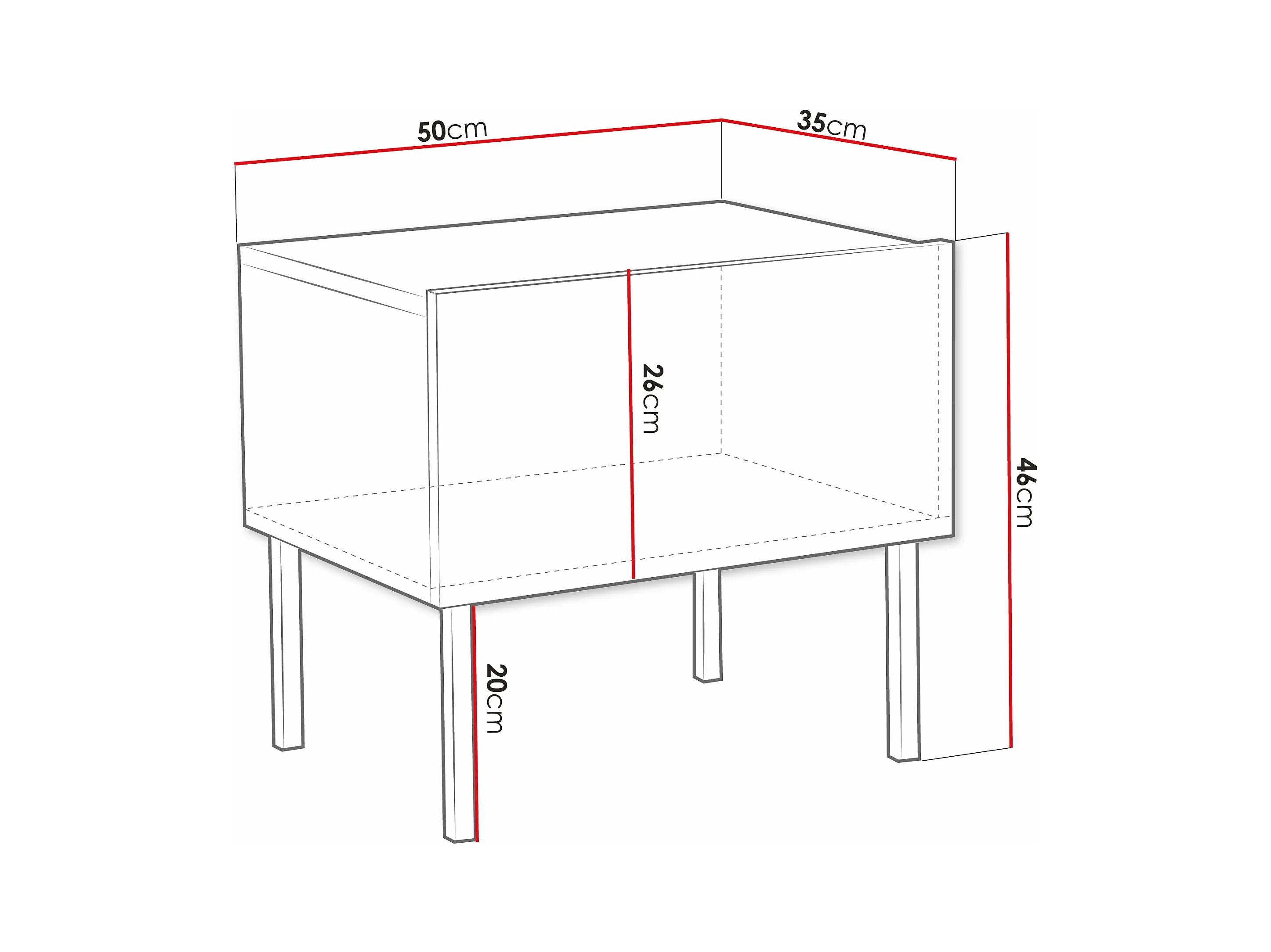 Mesa de cabeceira Levelbu 102, Número de gavetas: 1, 46x50x35cm