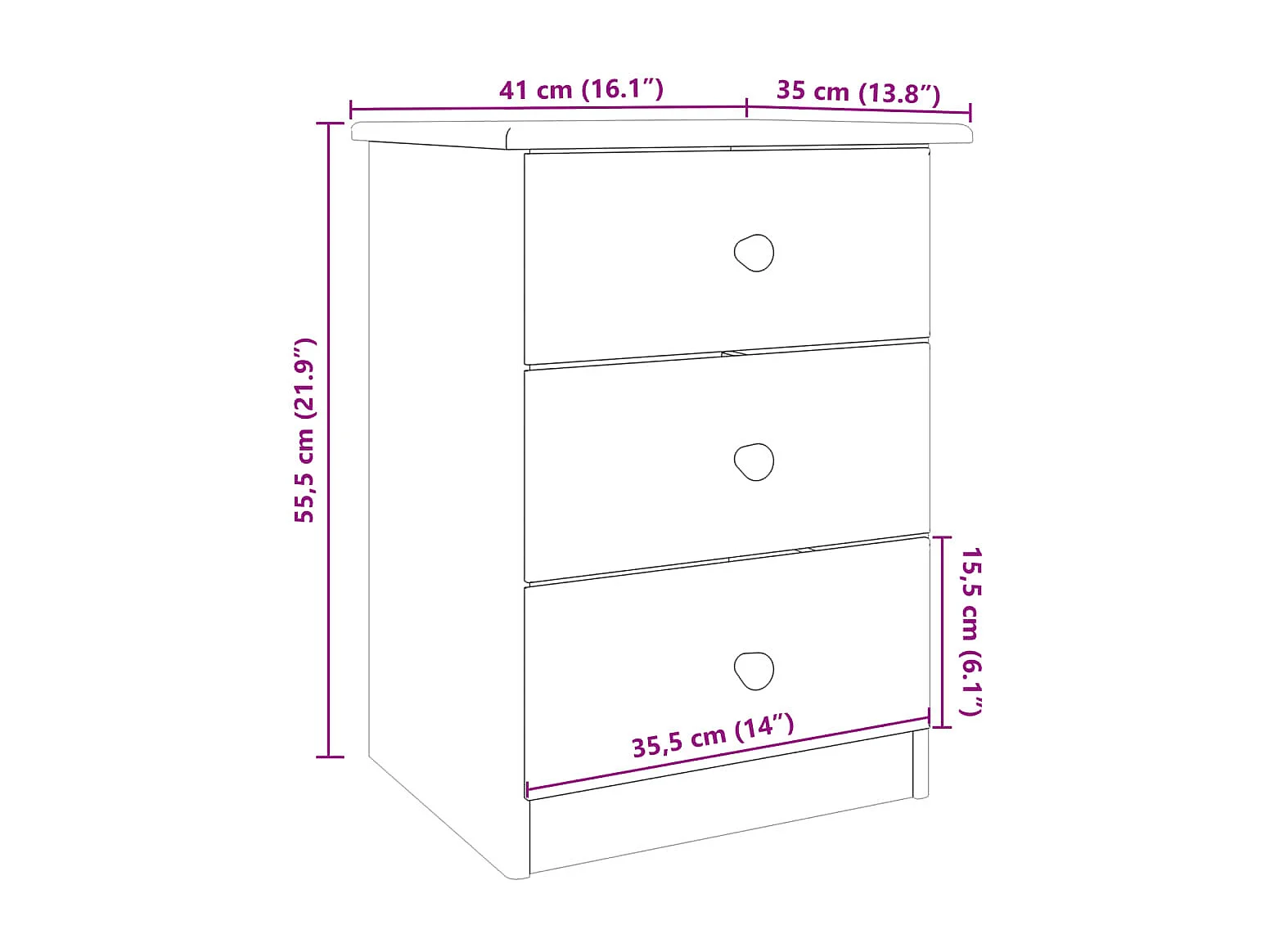 Mesa de Cabeceira | Mesa de Cama ALTA 41x35x55.5 cm madeira de pinho maciça