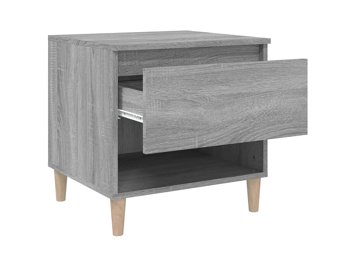 Mesa cabeceira perna mad. maciça 2 peças 40x30x50cm cinzento cim.