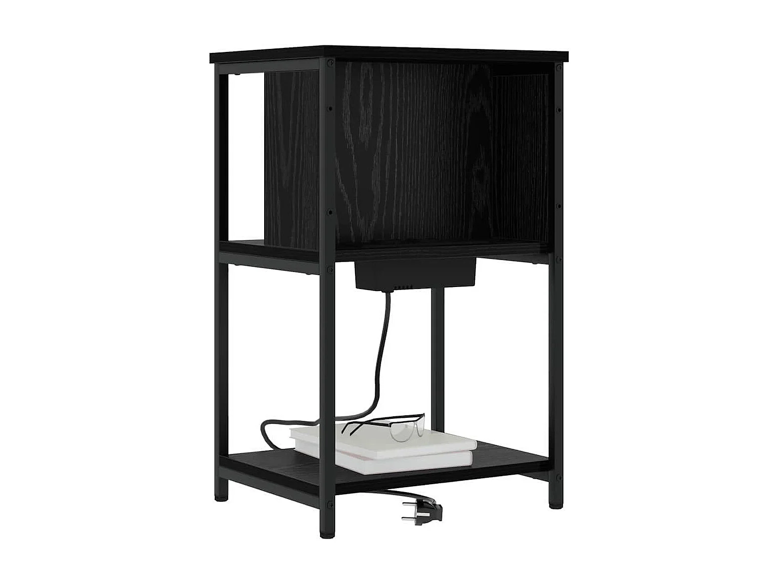 Mesa de Cabeceira | Armário Lateral com Estação de Carregamento Carvalho preto