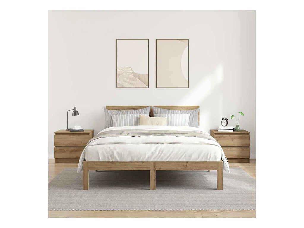 Mesa de Cabeceira Moderna 2 peças derivados de madeira carvalho artisiano